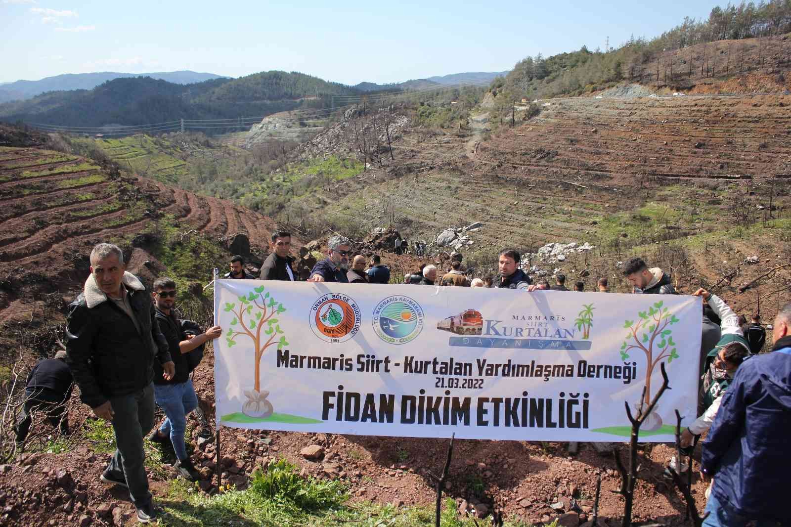 Marmaris Kaymakamı Ertuğ Şevket Aksoy, Orman İşletme Müdürü Akın Ünler’in de katıldığı etkinlikte ve Siirt Kurtalanlılar derneğinden 350 gönüllü 400 fidanı toprak ile buluşturdu.