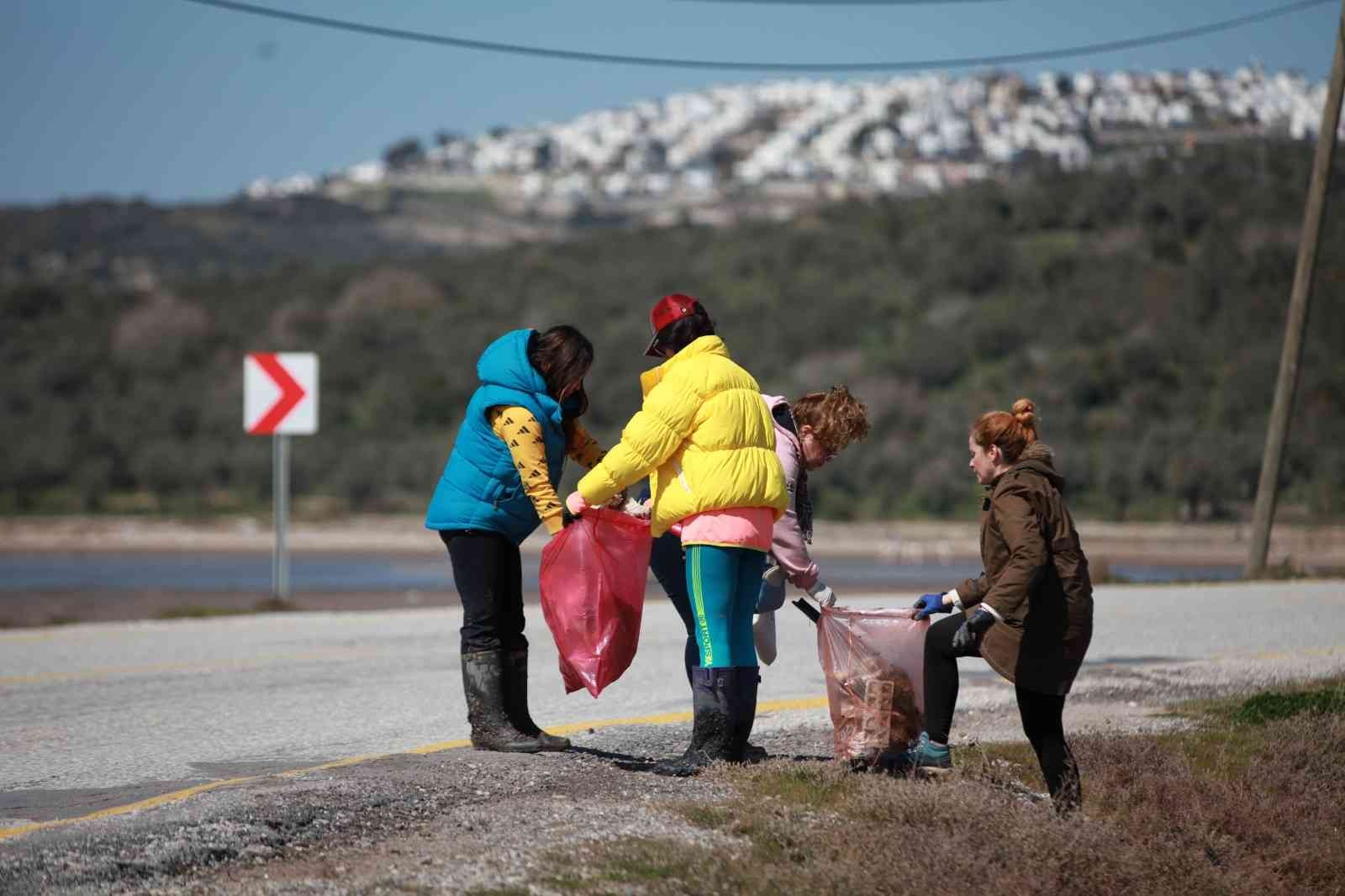 Bodrum – Milas karayolu üzerinde bulunan Boğaziçin Tuzla Sulak Alanı, sosyal medya üzerinden organize olan bir grup çevre gönüllüsü tarafından çevre temizliği yaptı. Flamingolarıyla ünlü 250’ye yakın kuş türüne ev sahipliği yapan Boğaziçi Bargilya Tuzla Sulak Alanı’ndaki çevre kirliliğine duyarsız kalmayan gönüllüler sabah saatlerinde alana giderek temizliğe başladı. Eski yağhane binasında bir araya gelen grup, ilk olarak tarihi binanın çevresinde temizlik gerçekleştirdi. Daha sonra Boğaziçi mevkiine giden yolun her iki tarafında çevreye gelişi güzel atılan çöpleri temizleyen grup, yaklaşık 2 saatte 33 poşet çöp topladı.