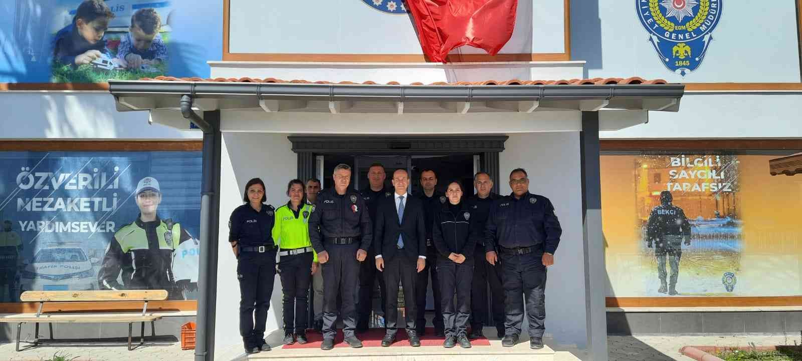 Muğla’nın Köyceğiz ilçesinde Türk Polis Teşkilatının 177’nci kuruluş yıl dönümü ve 4-10 Nisan Polis Haftası etkinlikleri çerçevesinde İlçe Emniyet Müdürü Vekili Ali Aydın ve beraberinde polis teşkilatının farklı birimlerinde görev yapan personel, Köyceğiz Kaymakamı Mustafa Maslak’ı makamında ziyaret etti.