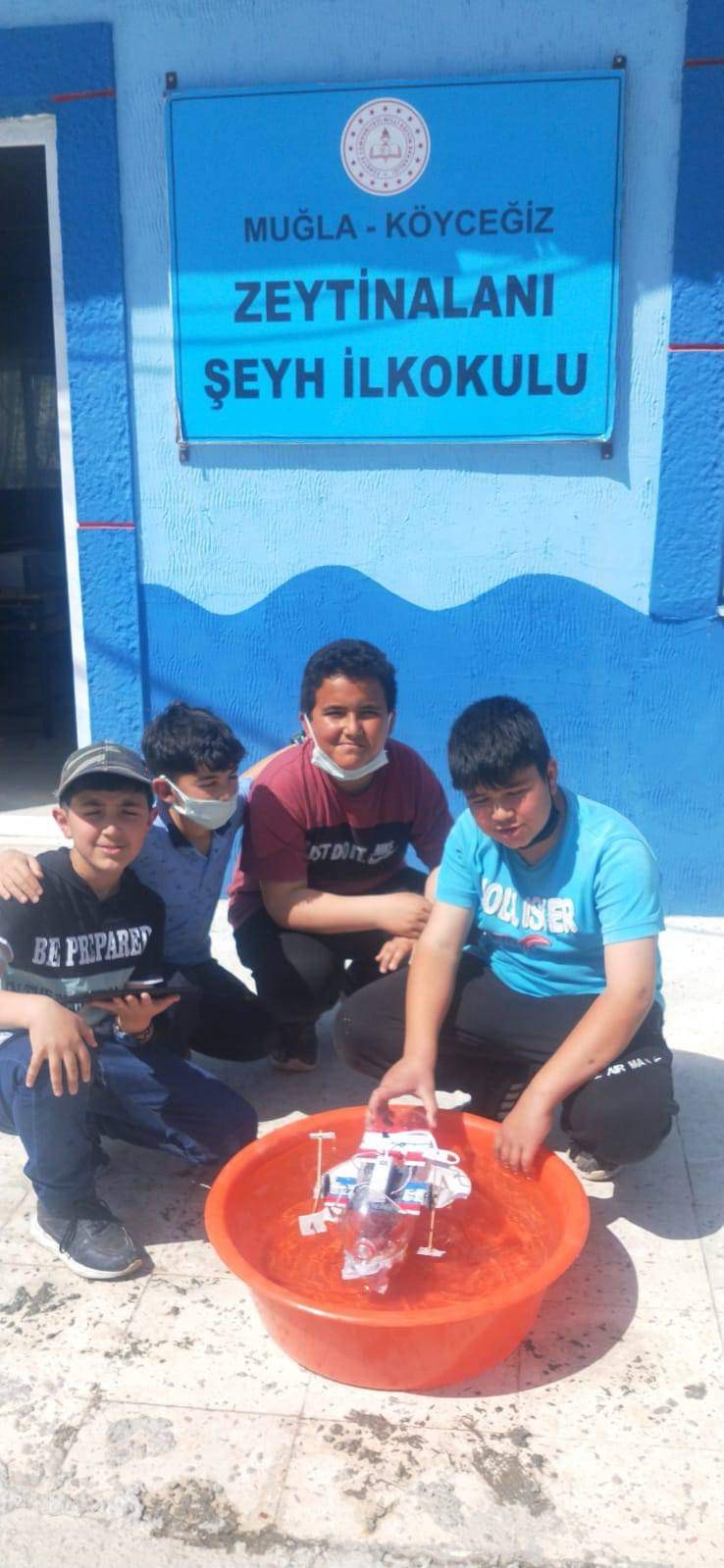 Muğla’nın Köyceğiz ilçesi Zeytinalanı Şeyh Ortaokulu öğrencileri su üstü atık temizleme robotu projesi gerçekleştirdi.