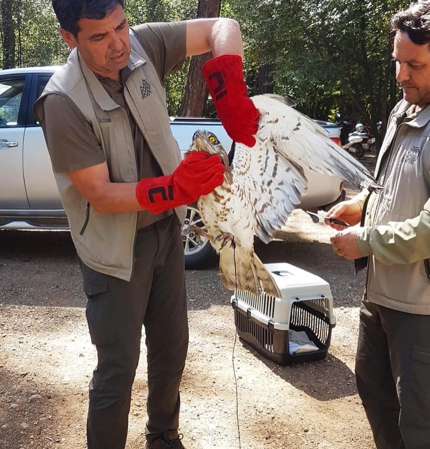Marmaris’te, duyarlı bir vatandaşın ihbarı üzerine Doğa Koruma ve Milli Parklar Müdürlüğü tarafından teslim alınan Yılan Kartalı ( Circaetus gallicus) ayağına misina ipi dolanmış olarak bulundu. Ayağındaki misina çıkarılan Yılan Kartalı cinsi yırtıcı kuş ilgili personeller tarafından tedavisi yapılarak Marmaris Milli Parkı’nda doğaya yeniden salındı.
