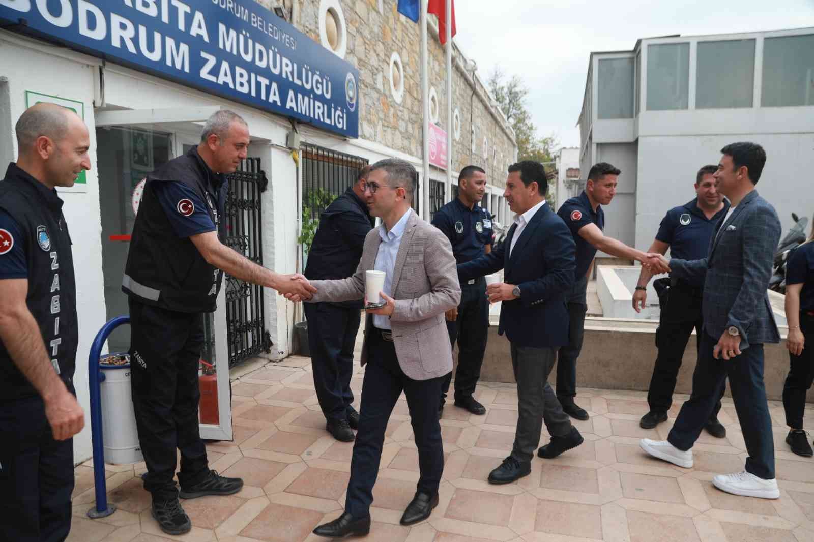 Çeşitli ikramların yapıldığı bayramlaşma töreninin ardından Bodrum Kaymakamı Bilgehan Bayar ile Bodrum Belediye Başkanı Ahmet Aras, Bodrum İlçe Emniyet Müdürlüğü ve İlçe Jandarma Komutanlığı’nı ziyaret ederek bayramlaşmalarını sürdürdü.