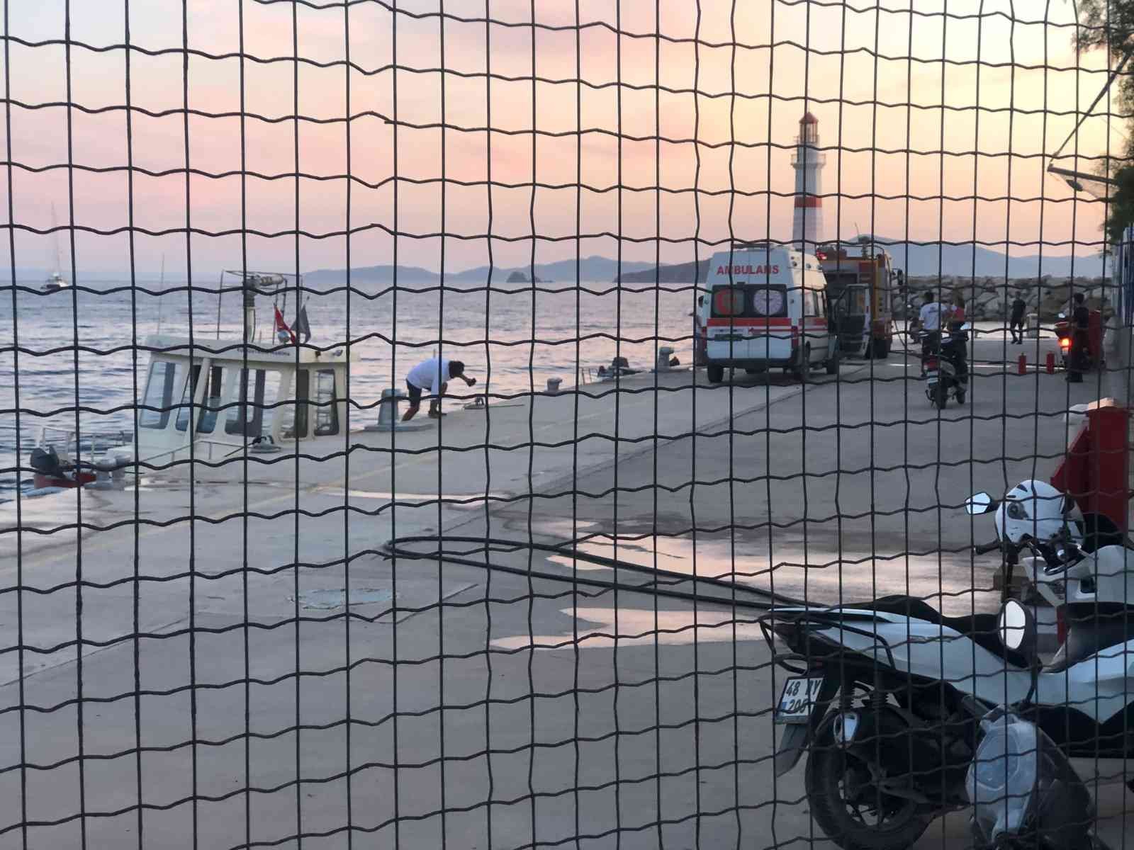 Turgutreis Mahallesi’ndeki marina içerisinde iskeleye bağlı bir teknede yakıt ikmali yapıldığı sırada iddiaya göre elektrik kontağından yangın başladı. Yaklaşık 10 metre uzunluğundaki teknede çıkan yangın bir anda büyüdü. Yangından çıkan dumanlar, ilçenin birçok yerinden görüldü.