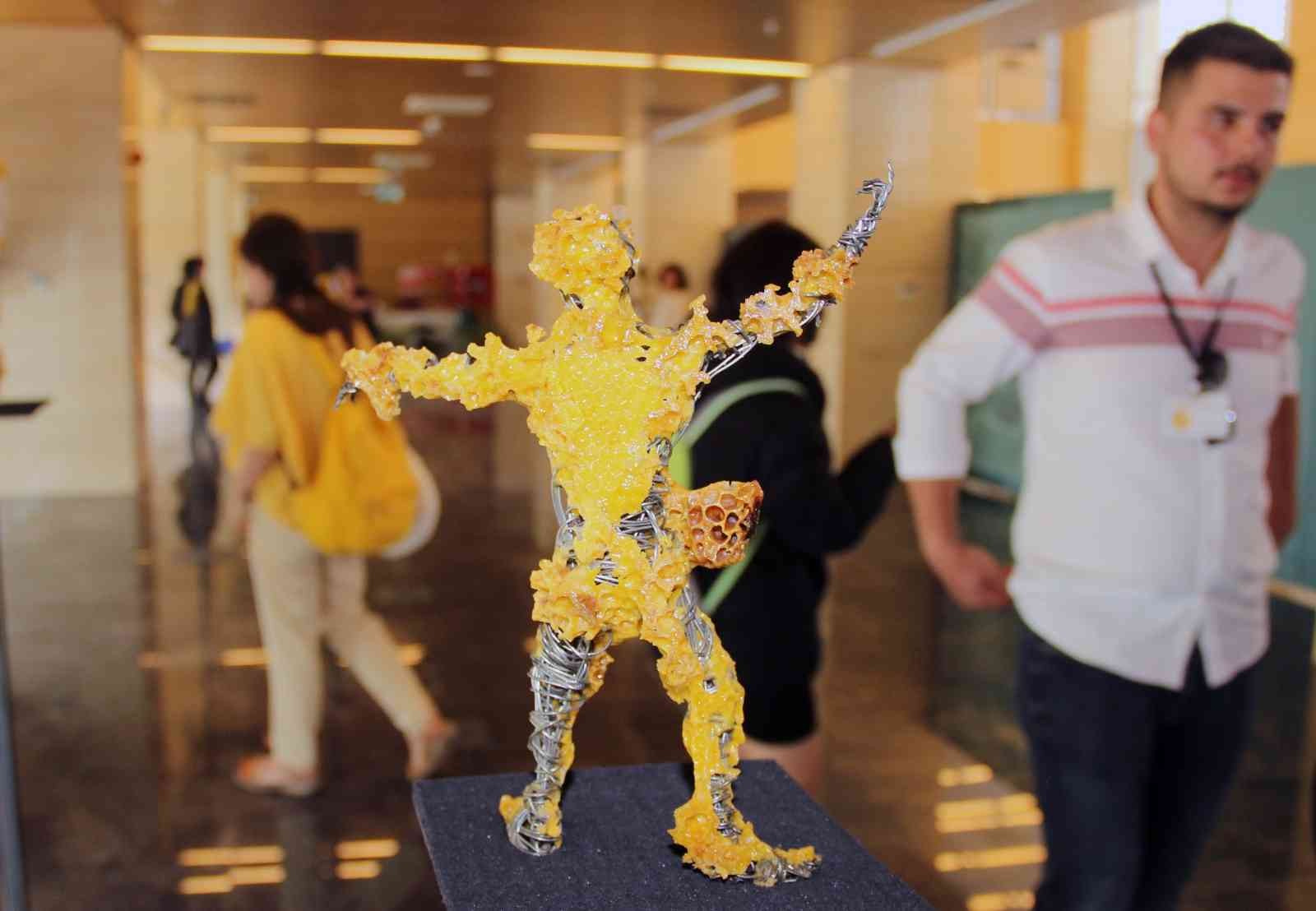 20 Mayıs Arı Günü etkinlikleri çerçevesinde Muğla Sıtkı Koçman Üniversitesi Arı ve Arıcılık Topluluğu tarafından düzenlenen etkinlikte arı kovanlarına yerleştirilen heykeller, arılar tarafından balmumuyla kaplandı. Eserler düzenlenen sergide görücüye çıktı.