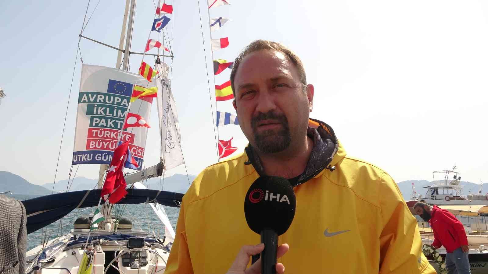 Kasım ayında Avrupa İklim Paktı Türkiye Büyük Elçisi ilan edilen ve Türkiye’deki ilk 20 kişiden biri olan ve Çiğli Belediye Başkanı Gümrükçü ‘’ Yaklaşık 17 gündür ekibimiz denizde, Hopa’dan başladılar, Cumartesi günü Çeşme’de de bugün Marmaris’e ulaştılar. Türkiye’nin üç tarafını minimum mazot sarfiyatı ile güneş enerjisi ve rüzgar enerjisini kullanarak geziyorlar. Bu sürdürülebilir enerji kaynakları ile ilgili bir farkındalık oluşturmak hem de Marmaris’in geçen yıl etkilendiği orman yangını başta olmak üzere seller, yağış rejiminin değişmesinden kaynaklı, dolular gibi felaketlerin de içinde barındıran sebep olan küresel iklim değişikliğine, iklim krizine karşı bir mücadele çağrısı amacı ile başlattığımız bir çalışma. Türk yurttaşı olarak dünyadaki bu krize dikkat çekmek için biz de bu çalışmanın içinde yer aldık. Türkiye’nin 81 ili arasında dostluk köprüsü kurabilmek için Marmaris’in yaralarına bir nebze olsa çözüm sağlayabilmek için Artvin Hopa’dan getirdiğimiz bu kozalakları ve bin tane tohumu belediye başkanımıza bugün burada armağan ettik. Bundan sonra da çalışmalarımız bu şekilde devam edecek ‘’ şeklinde konuşarak bu projenin Önümüzdeki Cumartesi günü Hatay’da sonuçlanacağı bilgisini verdi.