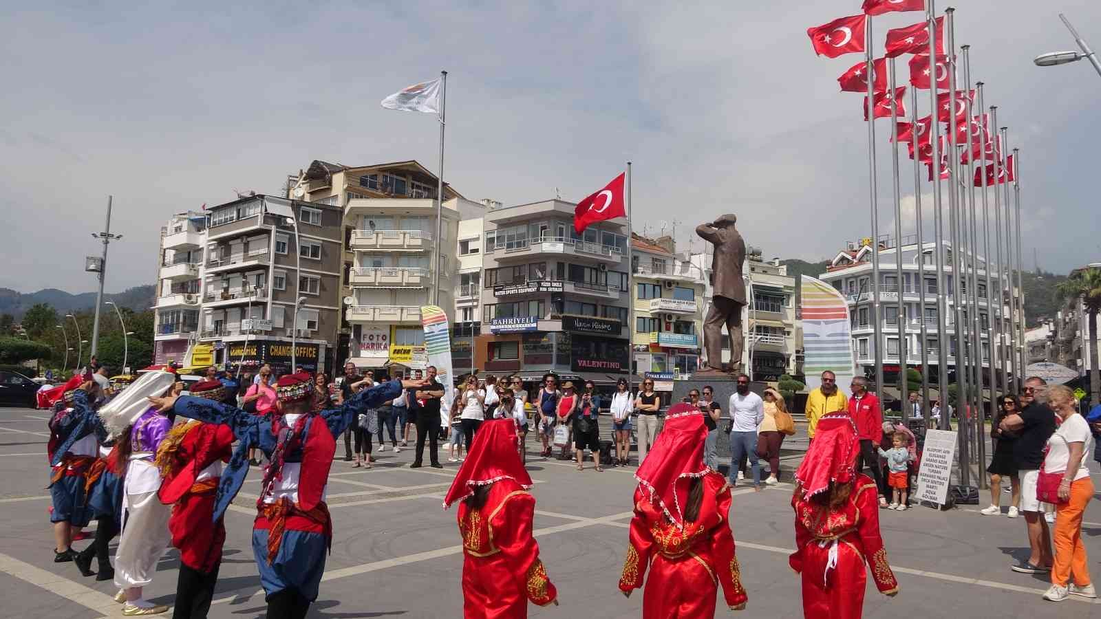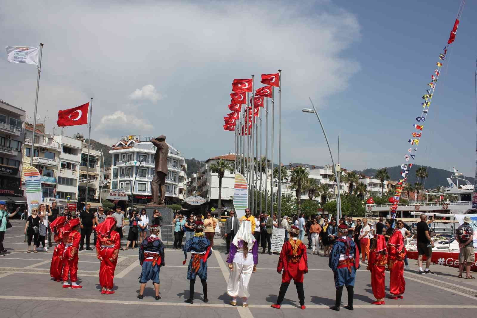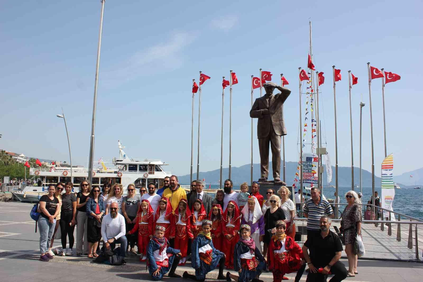 Atatürk Meydanında Şehit Ahmet Benler İlköğretim okulu öğrencilerinden oluşan folklor ekibinin gösterileri ile biten karşılama töreninden sonra yelkenli ekibi Hatay’a gitmek üzere yola çıktılar.