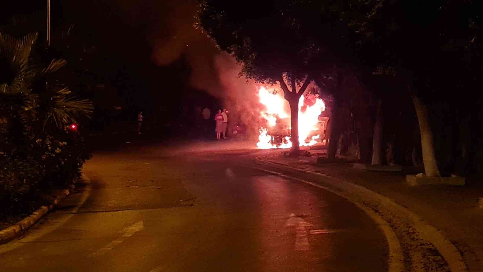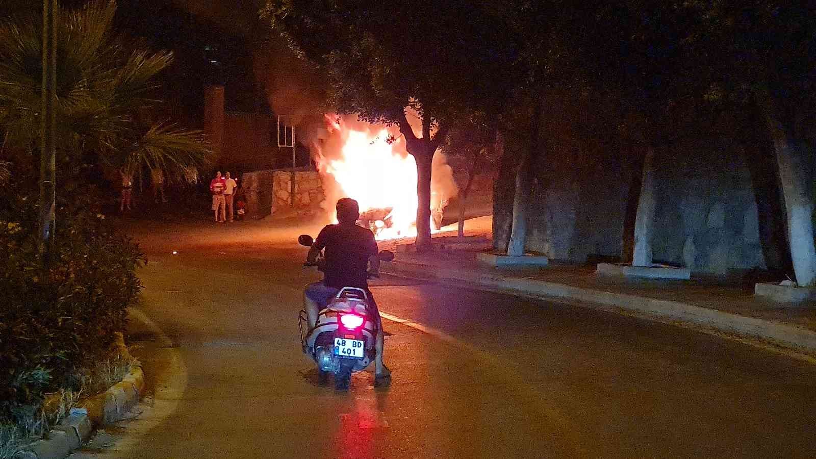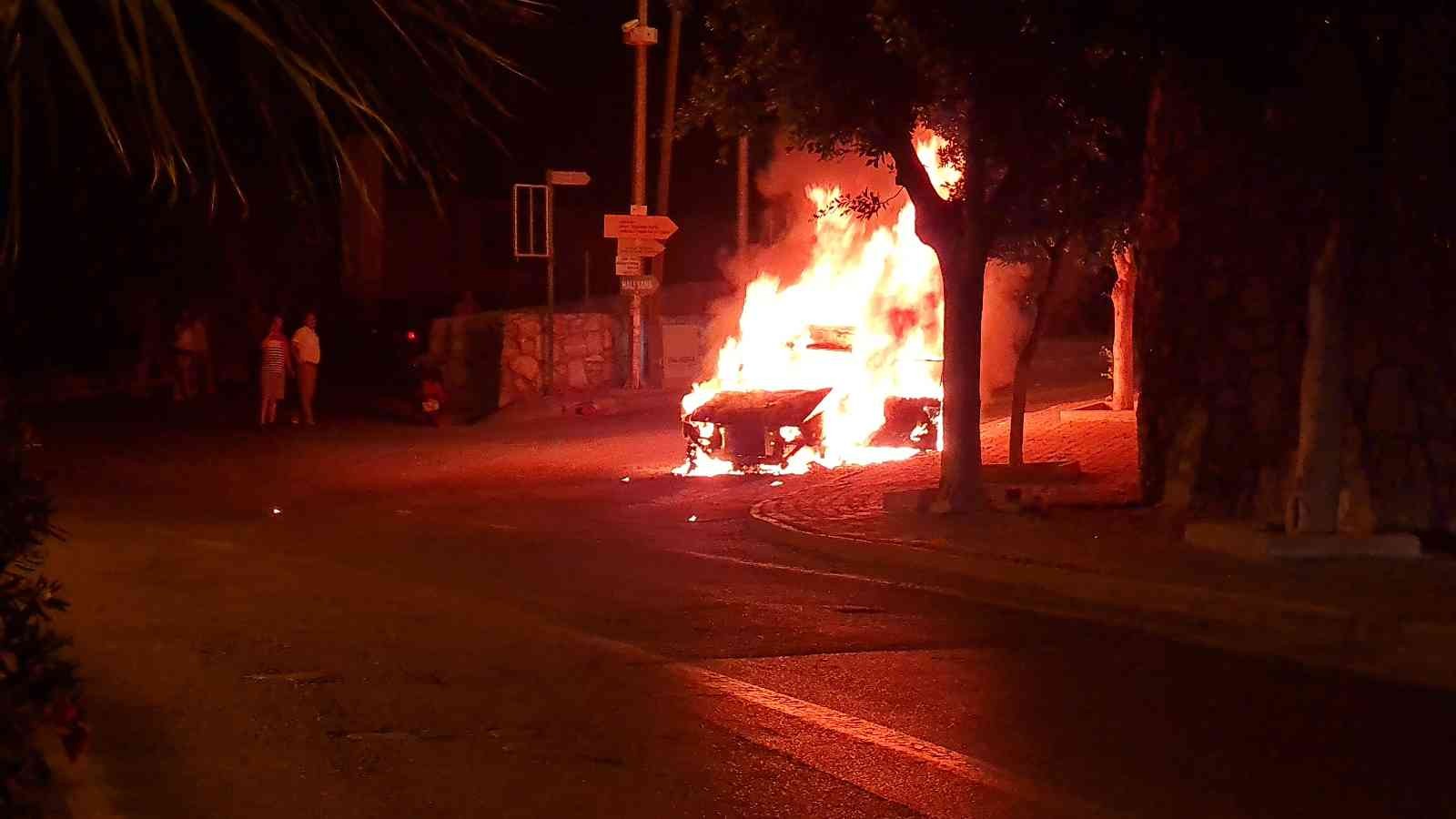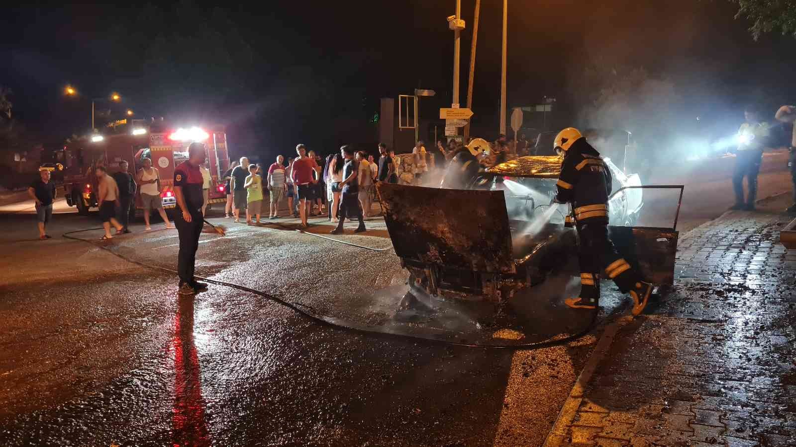 Muğla’nın Bodrum ilçesinde seyir halindeyken yanmaya başlayan otomobil alev topuna döndü. Zaman zaman patlamaların yaşandığı araç, tamamen yanarak kullanılamaz hale geldi.