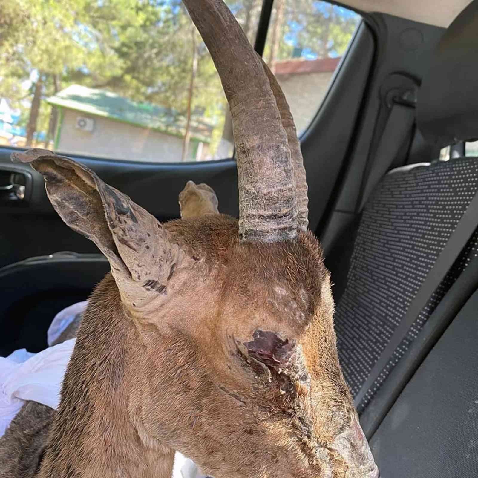 Yaralanan yaban keçisi Doğa Koruma ve Milli Parklar ekipleri tarafından alınarak anlaşmalı hayvan hastanesine getirildi. Hayvan hastanesinde yapılan ilk tetkikte, dişi yaban keçisinin tüm vücudunda yanıkların olduğu tespit edildi. Keçinin yüzünün yandığı, her iki kulağının ve bir gözünü kaybedilebileceği raporlanırken, sağ ön ayak tırnağının düşebileceği bildirildi.