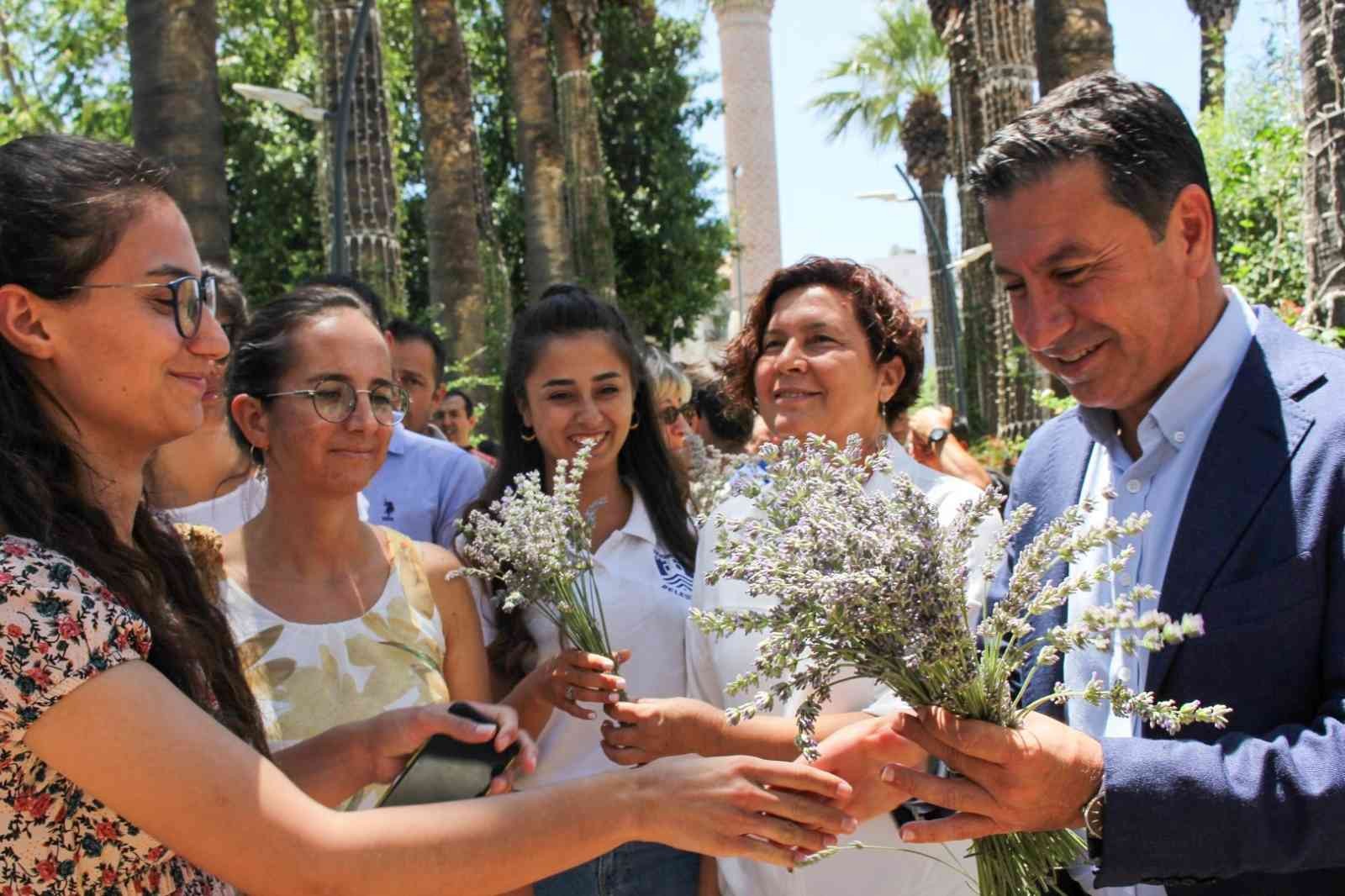 Başkan Aras personel ile tek tek bayramlaşırken, Tarımsal Hizmetler Müdürlüğü bünyesinde Garaova Tarım Park’ta yetiştirilip hasadı gerçekleştirilen lavantaları personele hediye etti.