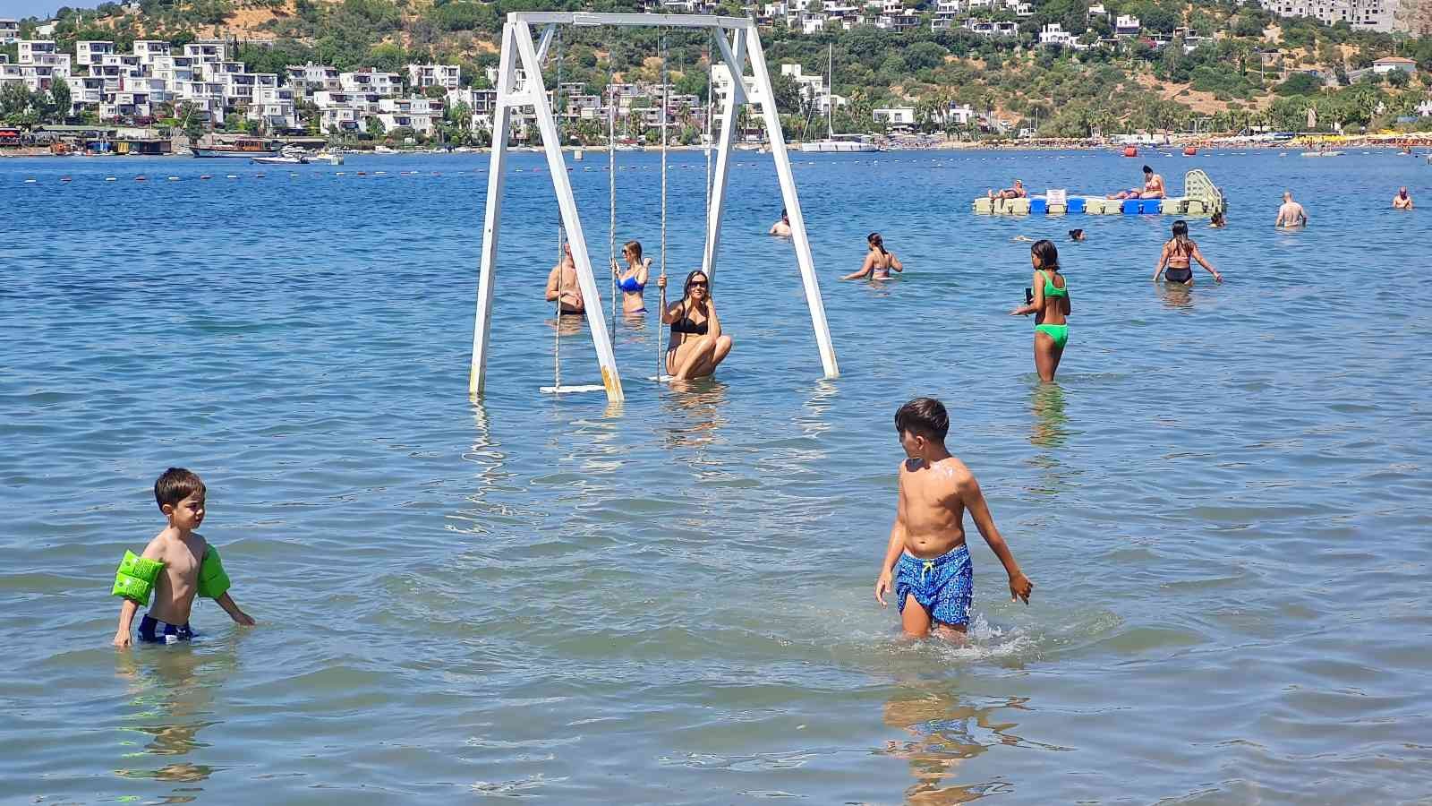 Muğla’nın Bodrum ilçesinde hava sıcaklığı 38 dereceye çıktı, sahillerde yoğunluk yaşandı.