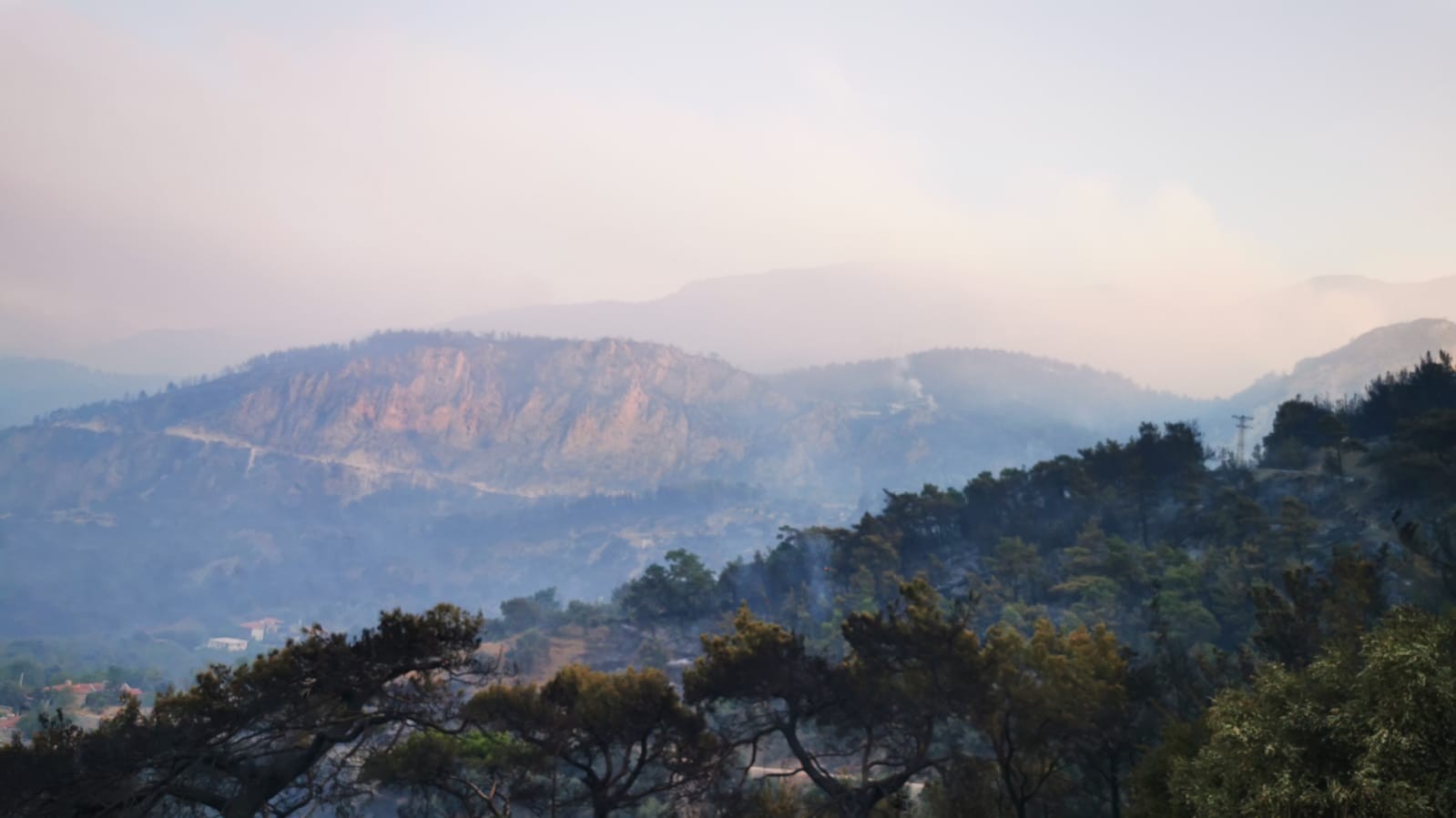 Datça’da günün ilk ışıkları ile birlikte orman yangınına havadan müdahale yeniden başladı