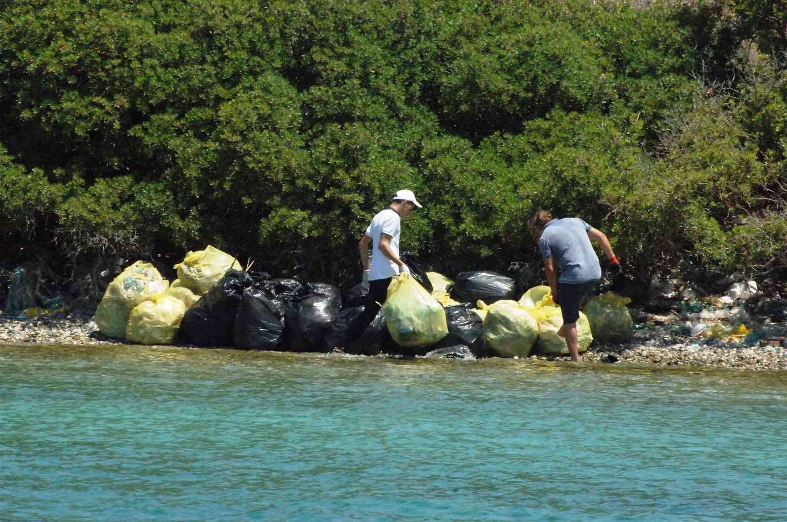 Muğla Tarım ve Orman İl Müdürlüğü tarafından Bodrum’un Güvercinlik koyunda toplanan çöpler 7,5 tonu bulurken, çöp dağını gören vatandaşlar şok oldu.