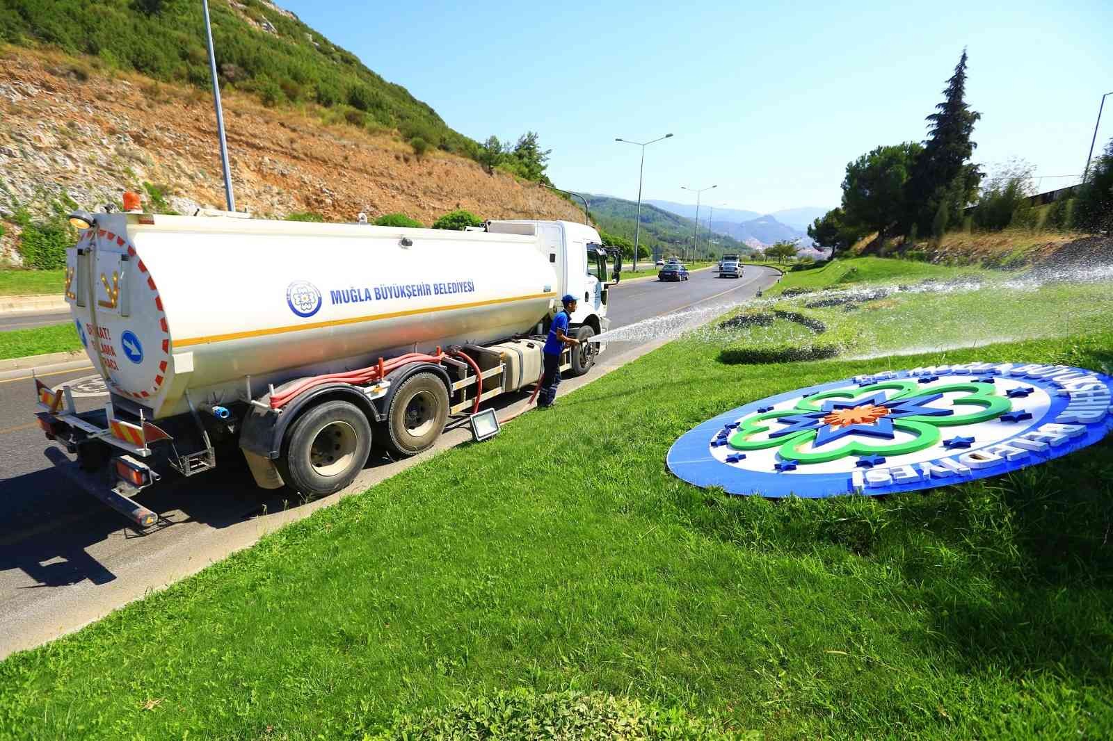 Park, refüj, kavşak gibi sorumluluk alanlardaki yerlerde peyzaj düzenlemelerini gerçekleştiren Muğla Büyükşehir Belediyesi, atıl alanları geriye kazandırırken, toprak altı sulama sistemi, çim yerine yer örtücü bitki kullanarak su tasarrufunda bulunuyor.