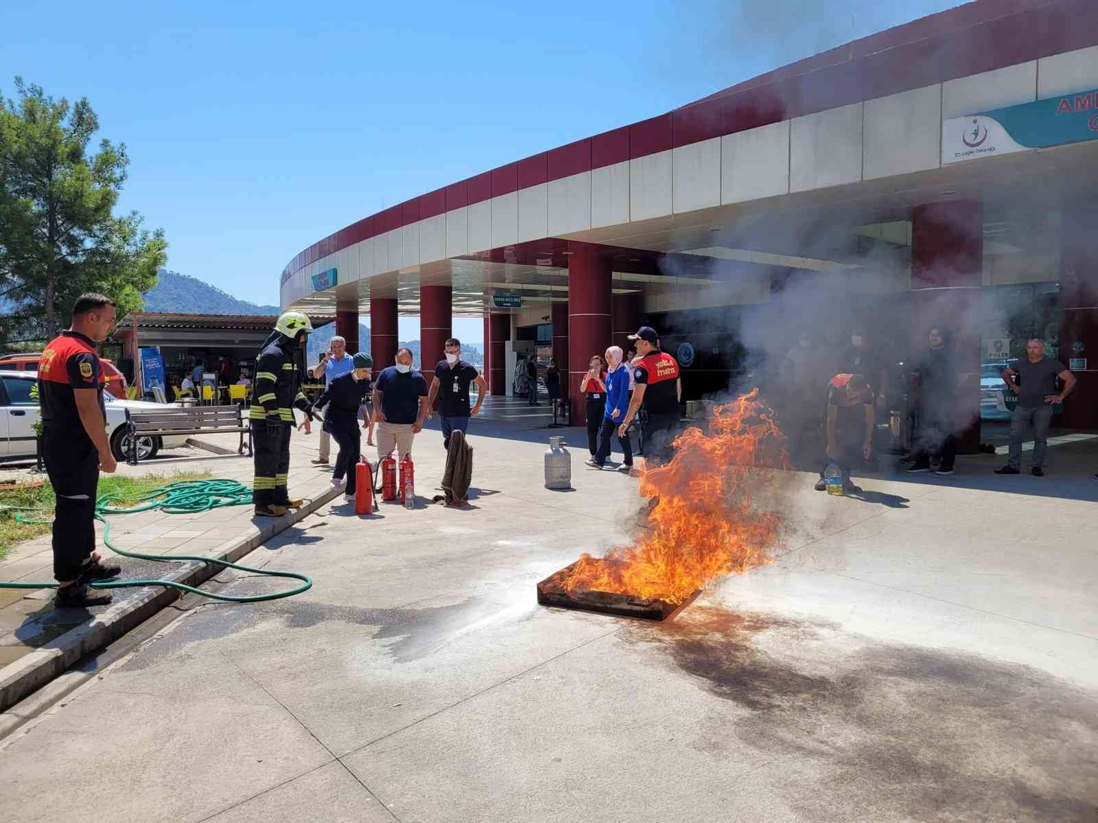 MUĞLA BÜYÜKŞEHİR BELEDİYESİ İTFAİYE DAİRESİ BAŞKANLIĞI TARAFINDAN ORTACA DEVLET HASTANESİNDE GÖREVLİ PERSONELE TEMEL YANGIN BİLGİSİ, YANGIN ÖNLEME VE SÖNDÜRME TEKNİKLERİ EĞİTİMİ VERİLDİ.