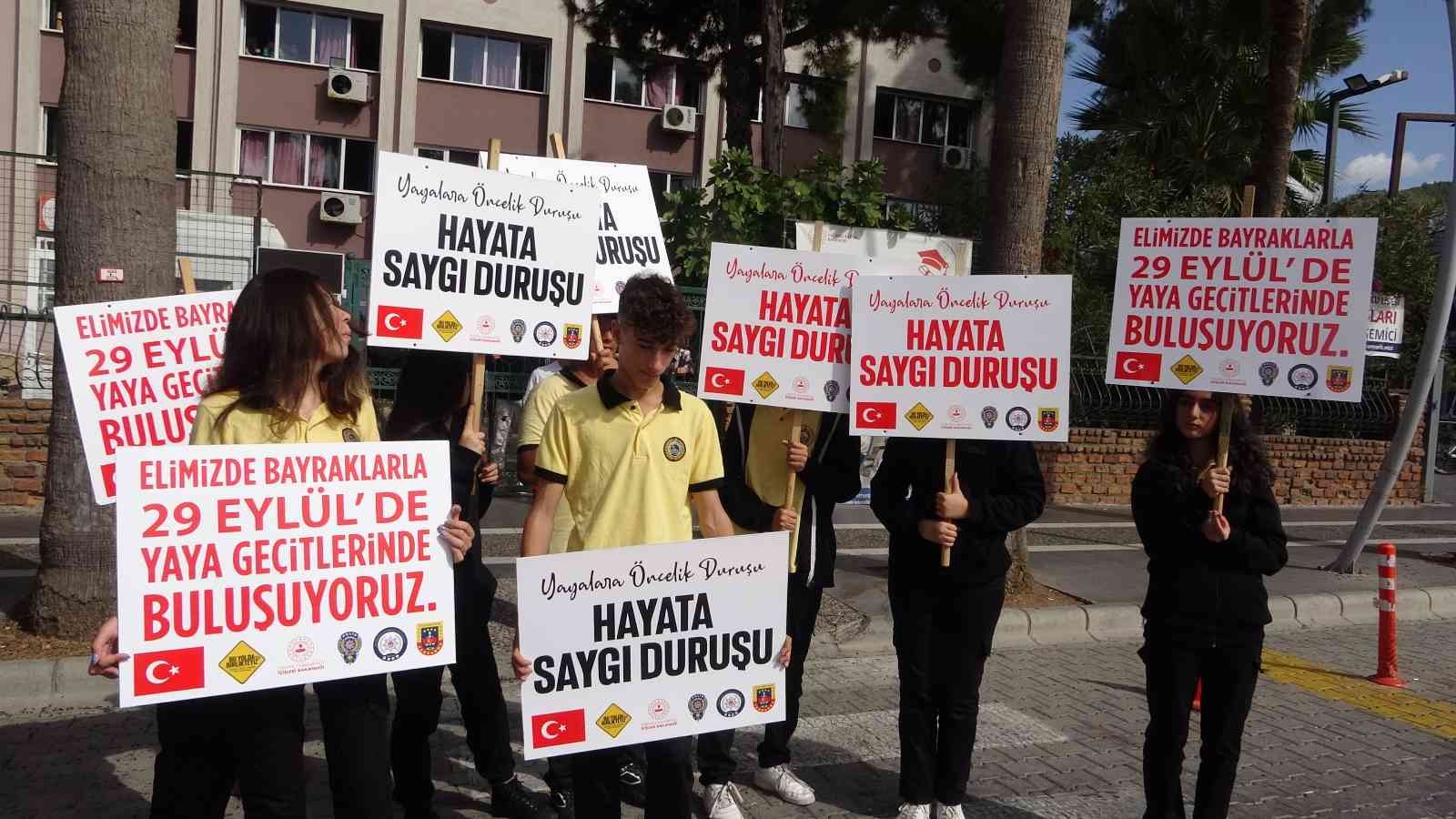 Gerçekleşen etkinlikte öğrenciler ellerinde ‘’ Yayalara öncelik duruşu hayata saygı duruşu ‘’ yazılı pankartlar taşıdı. İlçe Milli eğitim Müdürü Sibel Kısa, İlçe Jandarma Komutanı J.Yarbay Murat Çam ve İlçe Emniyet Müdürü Oktay Kapsız fırça ile yaya geçidinde bir şeridi kırmızıya boyayıp, trafikte devam eden araçlara öğrenciler ve memurlar ile birlikte Türk bayrağı ve broşürler dağıtarak yaya geçitlerinde yayalara yol vermenin önemini anlattı.