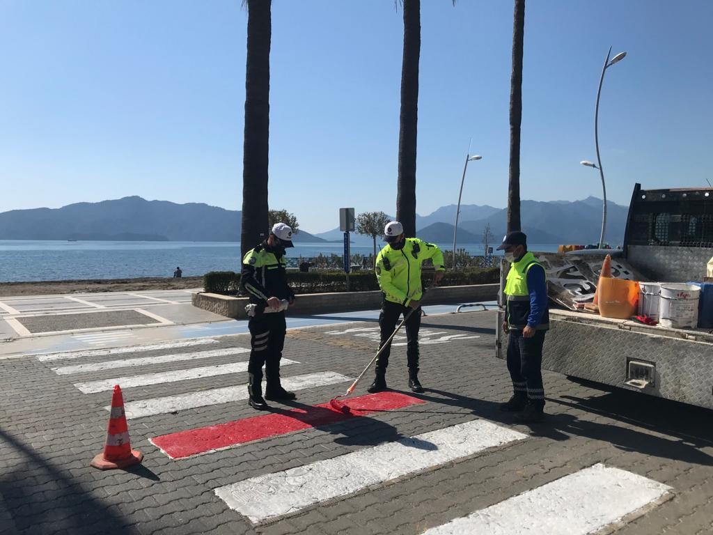 Marmaris’te yaya geçitleri kırmızıya boyandı