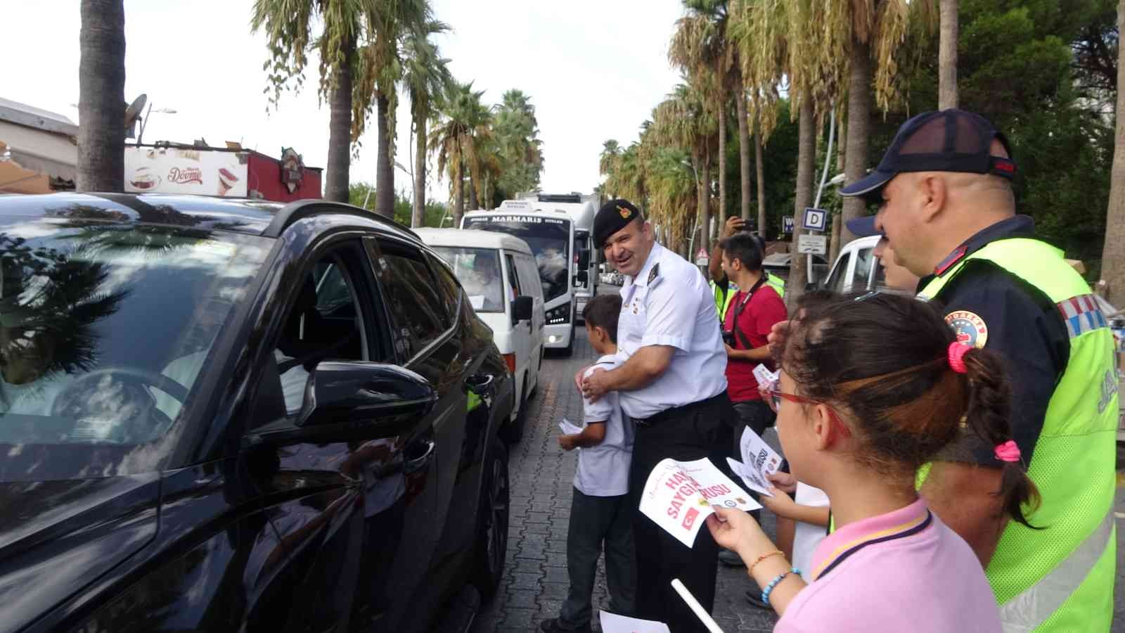 Marmaris Bölge Trafik Denetleme İstasyonu Komiseri Oktay Çobanoğlu ‘’ Türkiye genelinde yapılan bu uygulama da yaya geçitlerinin öneminin farkındalığını arttırmak için eylem yaptık. Jandarma ve emniyet trafik birimleri olarak bu farkındalık hareketini arttırmak için bir çalışma yapıyoruz. İlçe genelinde ve kırsal mahallelerde trafik ışığı olmayan tüm yaya geçitlerinde bir şeridi kırmızıya boyadık. Sürücülere yaya önceliği hakkında bilgiler verdik broşür ve bayraklar dağıttık ilçemizde trafik denetimleri aralıksız devam etmektedir. Amacımız can güvenliği ve olabilecek kazaların önüne geçebilmek’’ diyerek ilçe genelinde billboardlarda da tanıtımların yapıldığını belirtti.