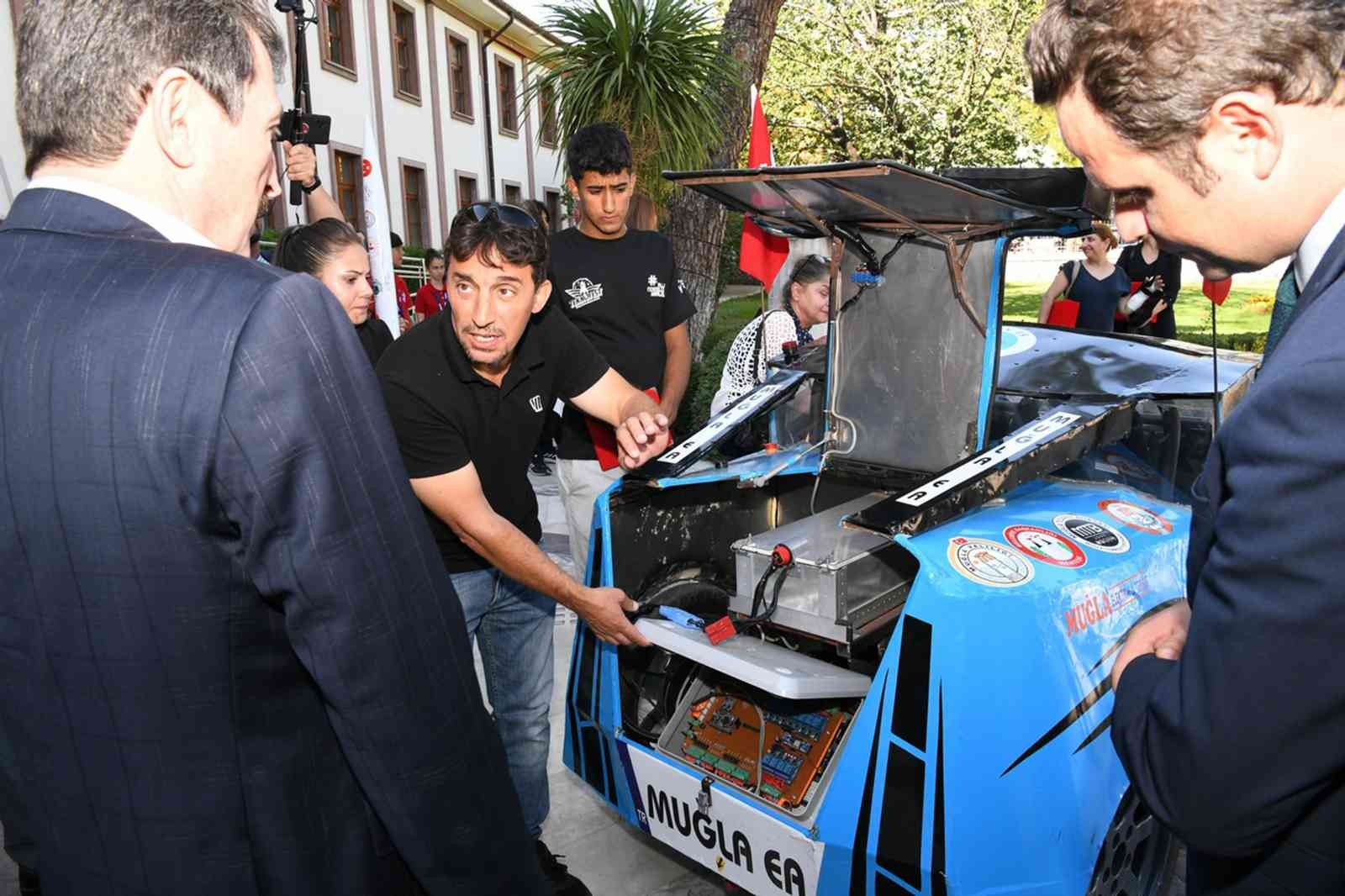 Valilik binası önünde hatıra fotoğrafı çekilmesinin ardından danışman öğretmenlere plaket, öğrencilere çeşitli hediyeler veren Vali Orhan Tavlı proje çerçevesinde geliştirilen araçları inceledi. Gençlerin ısrarı üzerine araçlara imza attı.