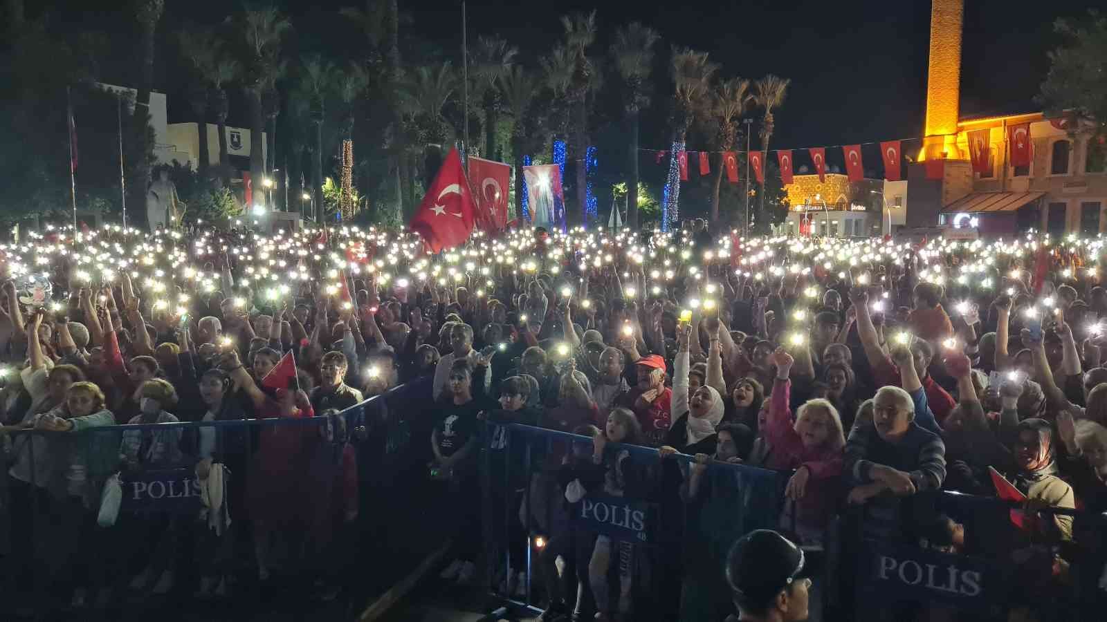 Konuşmaların ardından Kaymakam Bayar ve Başkan Aras zeybek oynadı. Binlerce kişinin cep telefonlarının fenerleri ile ışıklı gösteri yaptığı kutlama, Ferhat Livaneli Orkestrası ve Utku Erişik Konseri ile devam etti. Cumhuriyet Bayramı dolayısıyla Turgutreis’te de bir kutlama programı gerçekleştirildi. Kutlamada Gripin grubu konser verdi.