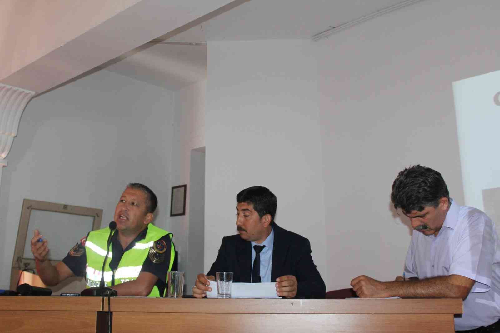 Toplantıda, başta iş sağlığı ve güvenliği olmak üzere, okul güzergahları, taşımalı çerçevesinde taşınan öğrencilerin güvenlikle ilgili konuları, okul servis araç sürücülerinin karşılaştıkları sorunlar masaya yatırılıp çözüm yolları bulundu. Toplantıya, Köyceğiz İlçe Trafik Büro Amiri Ferhat Gümüş, İlçe Jandarma Komutanlığı’ndan J.Kd.Üçvş.Trafik Tim. Komutanı Mevlüt Kılınç, İş Sağlığı Güvenliği Uzmanı Özcan Karadağ, Polis Memuru Mehmet Faruk Şahin ve okul servis araç sürücüleri katıldı.