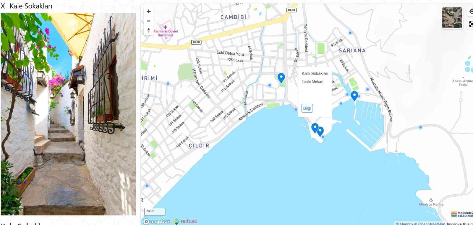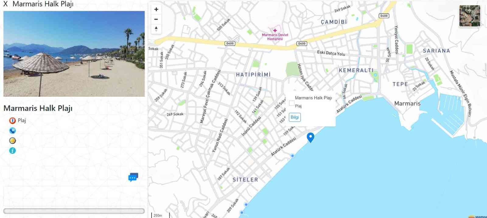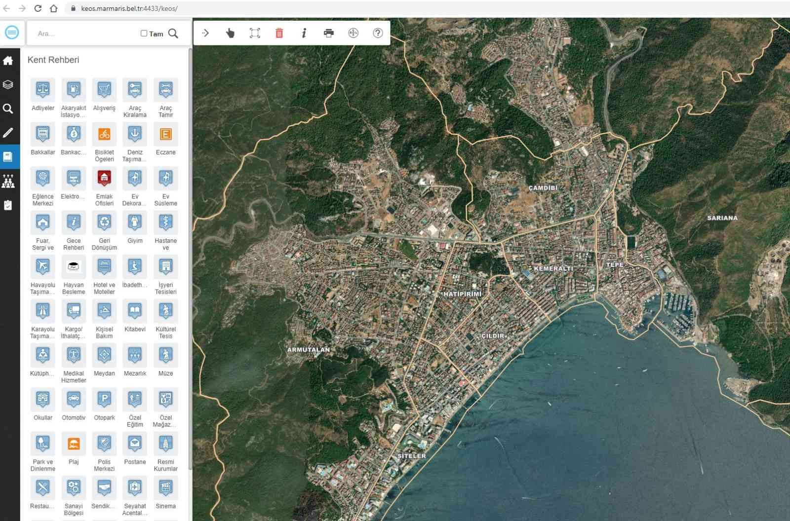 Yeni hizmetle ilgili bilgi veren Marmaris Belediyesi İmar ve Şehircilik Müdürvekili Dinçer Evdaşı, www.marmaris.bel.tr adresinde kent e-belediye sekmesi altında ‘kent haritası’ kısmında yer alan çalışmanın vatandaşlara büyük kolaylık sağlayacağını söyledi. Evdaşı, “Adres, kapı numaraları, ada pafta parsel bilgileri, imar durumu ve uydu görüntüsü gibi verilerin yer aldığı kent haritasında ayrıca vatandaşlarımız turizm rehberi sekmesinde istedikleri tüm bilgilere ulaşabilir” dedi. Coğrafi Bilgi Sistemleri Teknikeri Ramazan Vurgun ise sistemle sadece adres bilgilerine değil resmi kurumlar, sağlık kuruluşları, eczaneler, muhtarlıklar, bankalar, tarihi yerler, plajlar, gezilecek yerler, restoranlar, oteller gibi bilgilere de çok kolaylıkla ulaşıldığını aktardı.