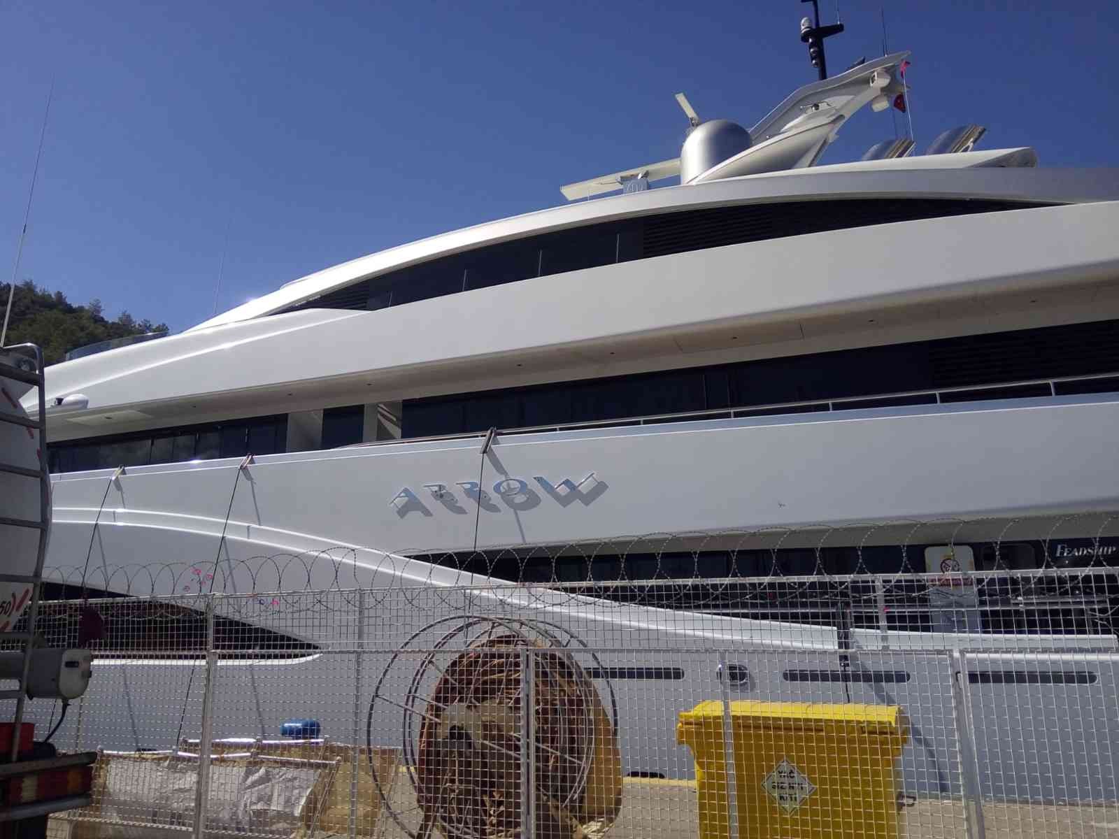 Sezon başında Fethiye, Marmaris ve Bodrum’a gelen dünyanın en iyi yatları sahiplerini ve misafirlerini ağırladıktan sonra sezon sonu yaklaşınca birer birer ayrılmaya başladı. Fethiye’ye gelen lüks yat ’Arrow’ çıkış yapmadan önce 80 ton transit yakıt aldı. Sabah saatlerinde Fethiye iskelesine yanaşan Arrow, gün boyu yakıt ve kumanya ikmali yaptı. Haftalık kirası 850 bin avro olan 75 metre uzunluğundaki lüks yat yerli ve yabancı turistler tarafından ilgiyle izlendi. 6 süper lüks suit kabini bulunan yatta 12 misafir ağırlanabilirken, yatta 19 mürettebatın görev yaptığı öğrenildi. Çelik gövde ve alüminyum üst yapı ile inşa edilen Arrow’un iç tasarımı dünyaca ünlü iç mimarlar tarafından yapıldı. Dünyaca ünlü finans uzmanları, ünlü film yıldızları ve sporcuların kiraladığı yatta her türlü su sporları aletleri bulunuyor. Cayman Adaları bayraklı 75 metre uzunluğundaki Arrow’un Fethiye’den çıkış yapacağı öğrenildi.