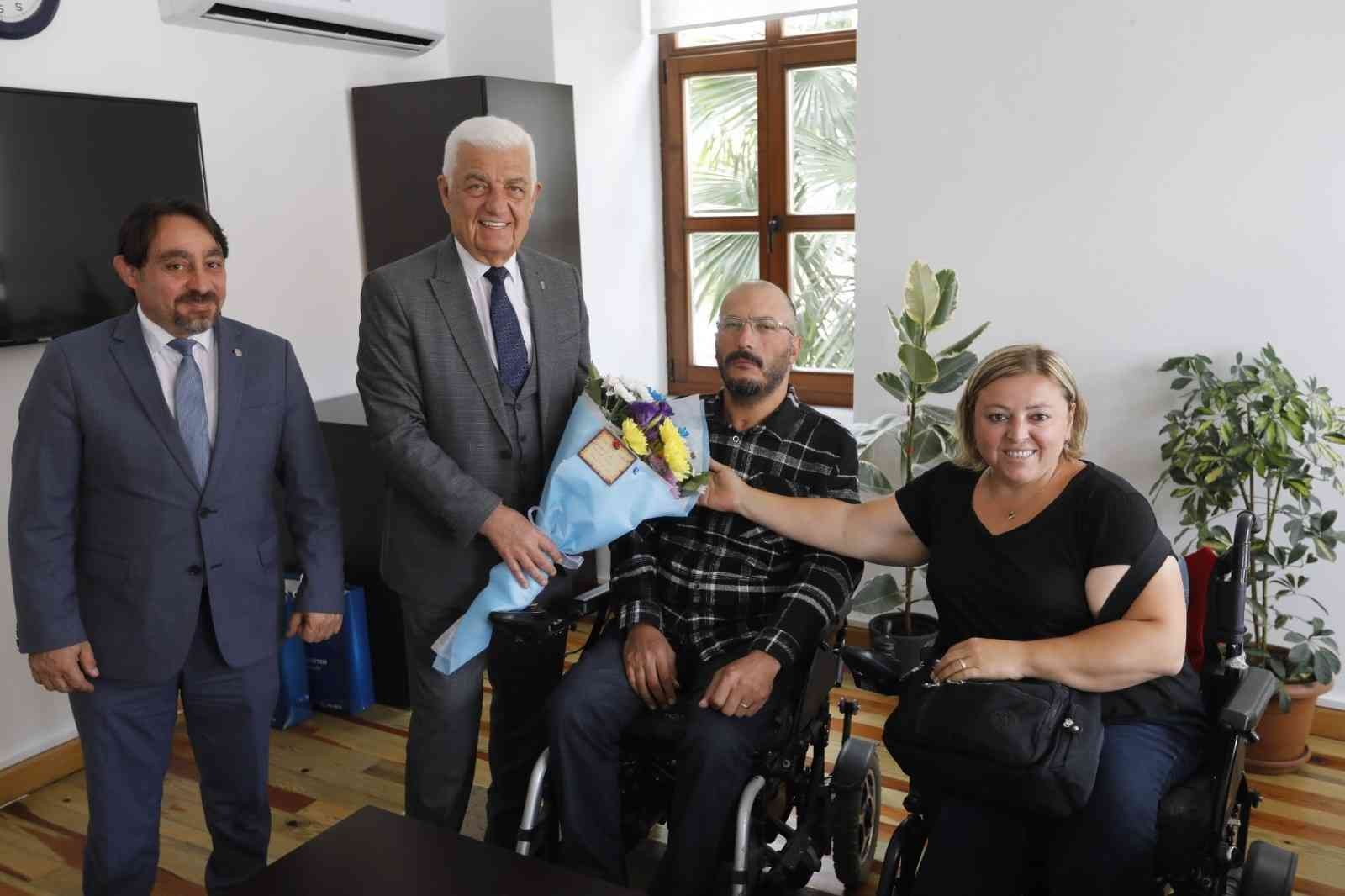 Muğla Büyükşehir Belediyesi Sende Gel Engelsiz Kafe’de dünya evine giren Aysel ve Yusuf çifti Muğla Büyükşehir Belediye Başkanı Dr. Osman Gürün’e teşekkür ziyaretinde bulundu.