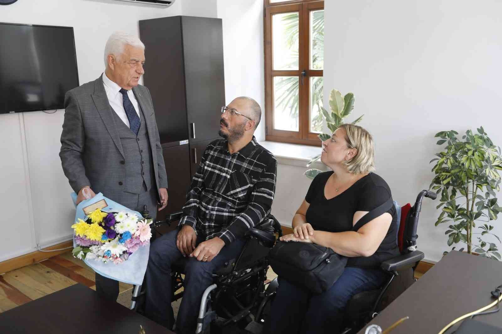 MUĞLA (İHA) – MUĞLA BÜYÜKŞEHİR BELEDİYESİ SENDE GEL ENGELSİZ KAFE’DE DÜNYA EVİNE GİREN AYSEL VE YUSUF ÇİFTİ MUĞLA BÜYÜKŞEHİR BELEDİYE BAŞKANI DR. OSMAN GÜRÜN’E TEŞEKKÜR ZİYARETİNDE BULUNDU.