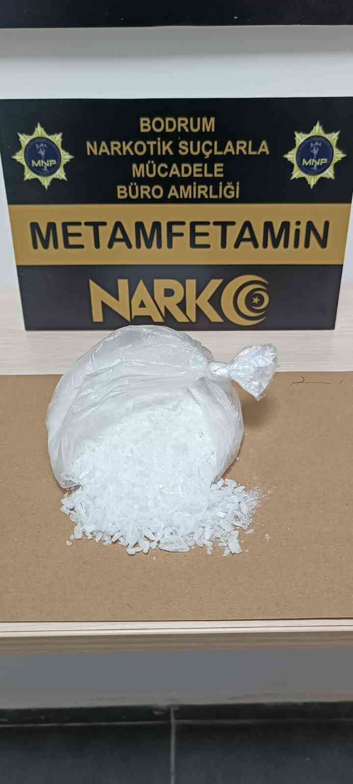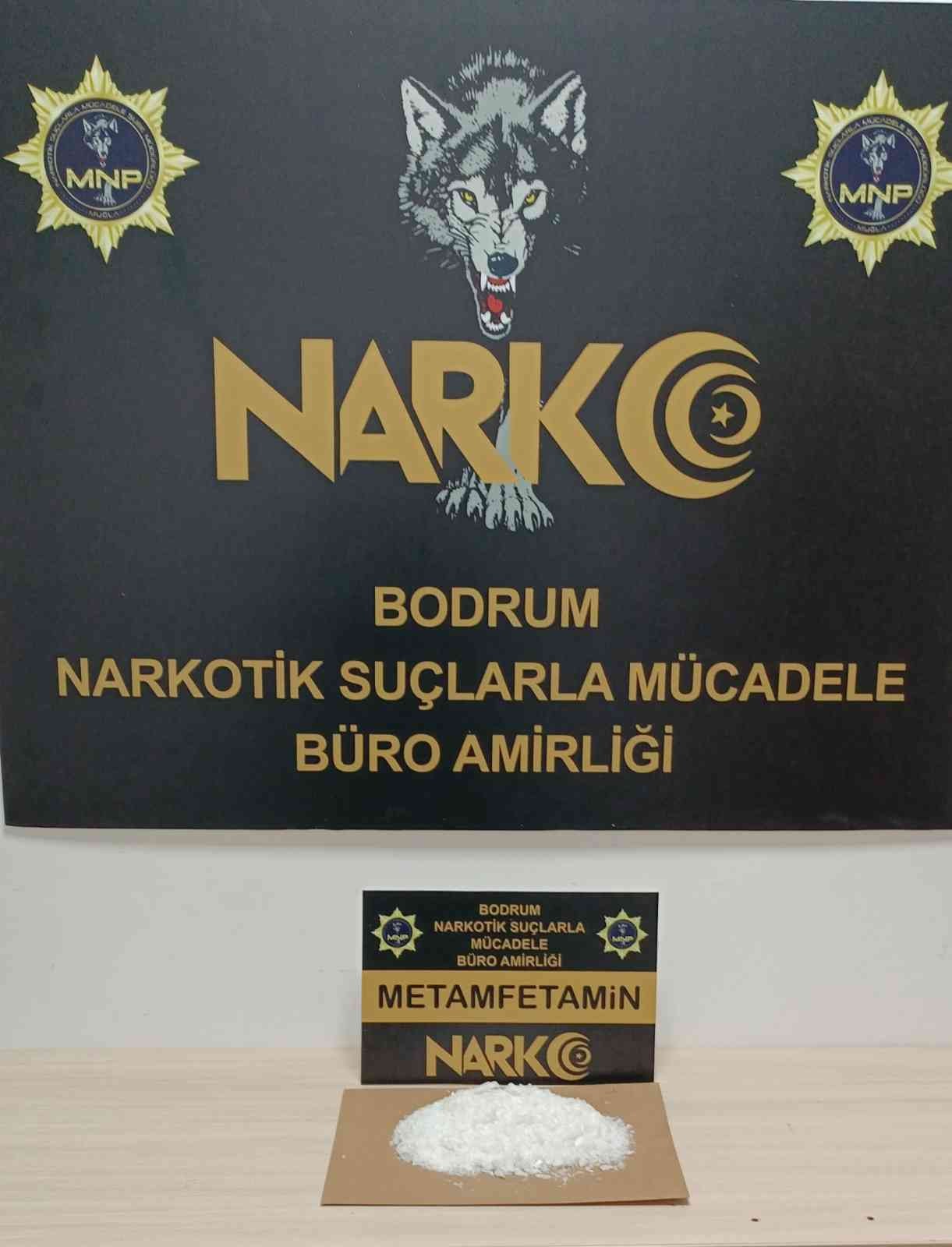 Bodrum Cumhuriyet Başsavcılığı koordinesinde Bodrum Narkotik Suçlarla Mücadele Büro Amirliğince yapılan çalışmalar çerçevesinde ilçeye yüklü miktarda uyuşturucu madde getirileceği bilgisine ulaşıldı. Şüpheli araç ilçe girişinde durdurularak araçta yapılan adli aramada; 300 gram metamfetamin maddesi ele geçirildi. Araçta bulunan H.Y. isimli şahıs, uyuşturucu madde ticareti yapmak suçlamasıyla gözaltına alındı. Emniyetteki işlemlerin ardından adliyeye sevk edilen şüpheli, tutuklanarak cezaevine gönderildi.