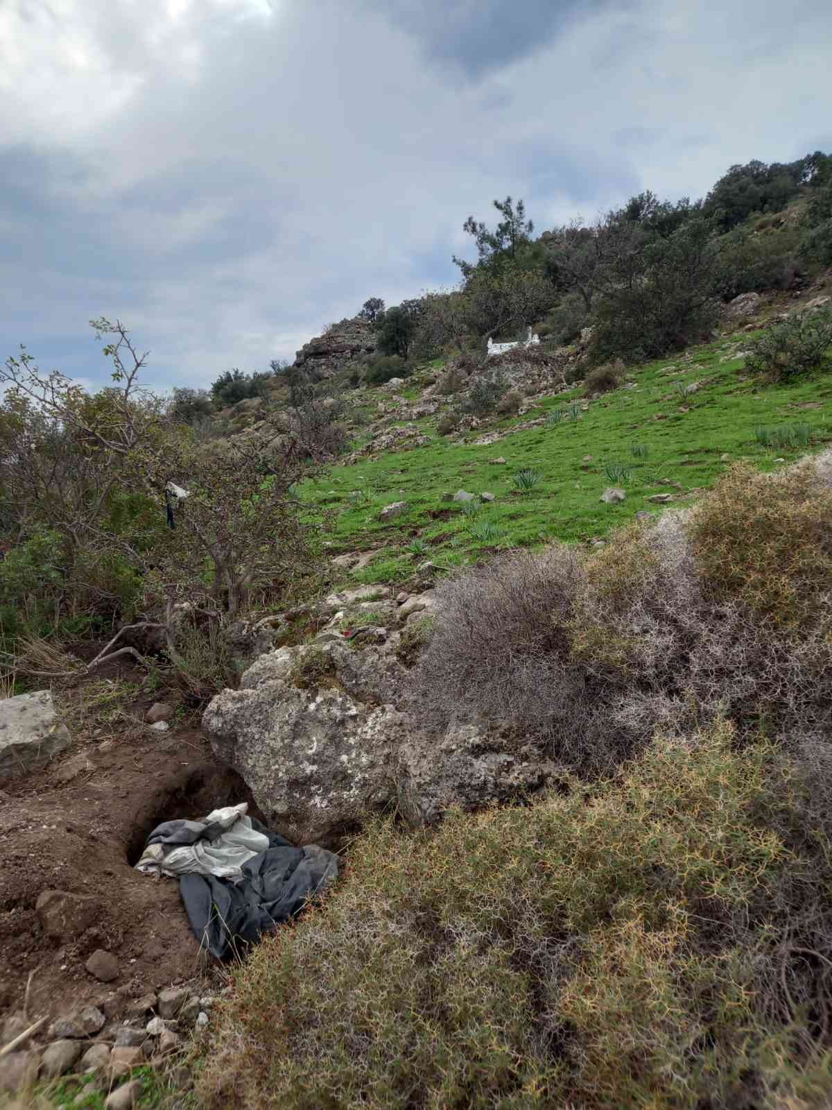 Çok sayıda kaya mezarının yer aldığı Göktepe, sık sık define avcılarının hedefi haline geliyor. Göktepe mevkisinde kaçak kazı yapıldığı bilgisini alan Bodrum Kaçakçılık ve Organize Suçlarla Mücadele Büro Amirliği ekipleri hareket geçti. Ekipler, 2 şüpheliyi kaçak kazı yaptığı sırada suçüstü yakaladı. Şüphelilerin kaçak kazı yaparken kullandıkları 2 kürek, 1 kriko, 1 demir kazma, 2 balyoz keskisi, 1 pense, 1 çekiç ele geçirildi. M.Ö. ve C.Ö. isimli şüpheliler hakkında adli işlem başlatıldı.