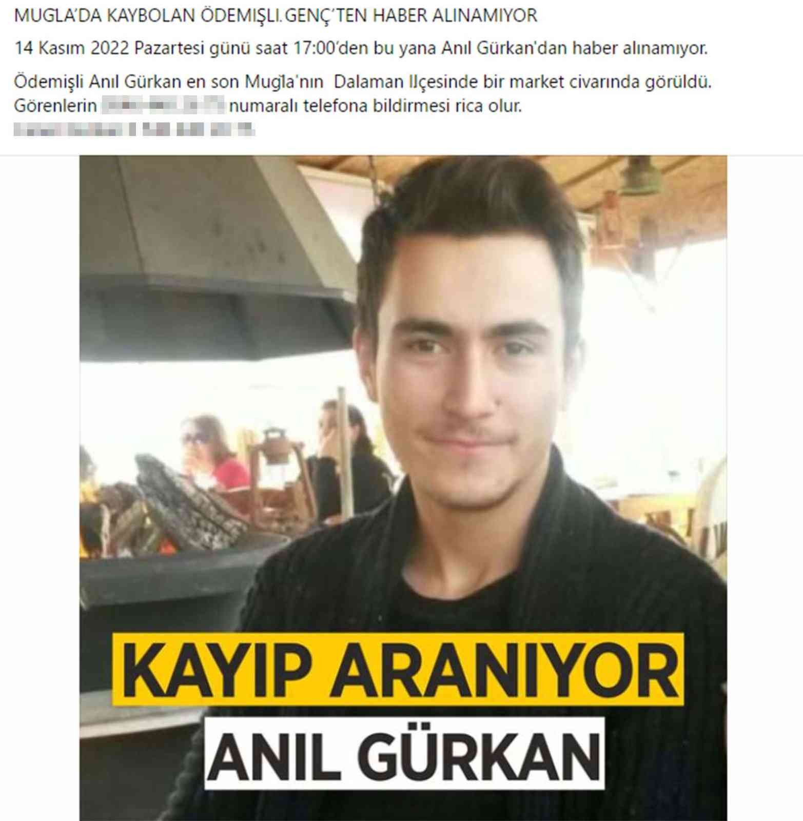 Olay, Beskese Mahallesi’ndeki Günlüklü mevkiinde meydana geldi. Edinilen bilgiye göre, ağaçlık alanda bir ağaca asılı erkek cesedi olduğunu fark eden vatandaşlar durumu 112 Acil Çağrı Merkezi’ne bildirdi. İhbar üzerine bölgeye polis ekipleri yönlendirildi. Olay yerine gelen ekiplerin gerekli incelemelerinin ardından ceset, kimlik tespiti ve kesin ölüm nedeninin belirlenebilmesi için otopsi yapılmak üzere hastane morguna götürüldü. Bulunan cesedin İzmir’in Ödemiş ilçesinde kaybolan ve 14 Kasım’dan bu yana kendisinden haber alınamayan 23 yaşındaki Anıl Gürkan’a ait olduğu tespit edildi. Gürkan’ın ölüm haberini alan ailesi ve yakınları yasa boğulurken, Gürkan’ın cenazesi Ödemiş’in Çamyayla Mahallesi’nde toprağa verildi.