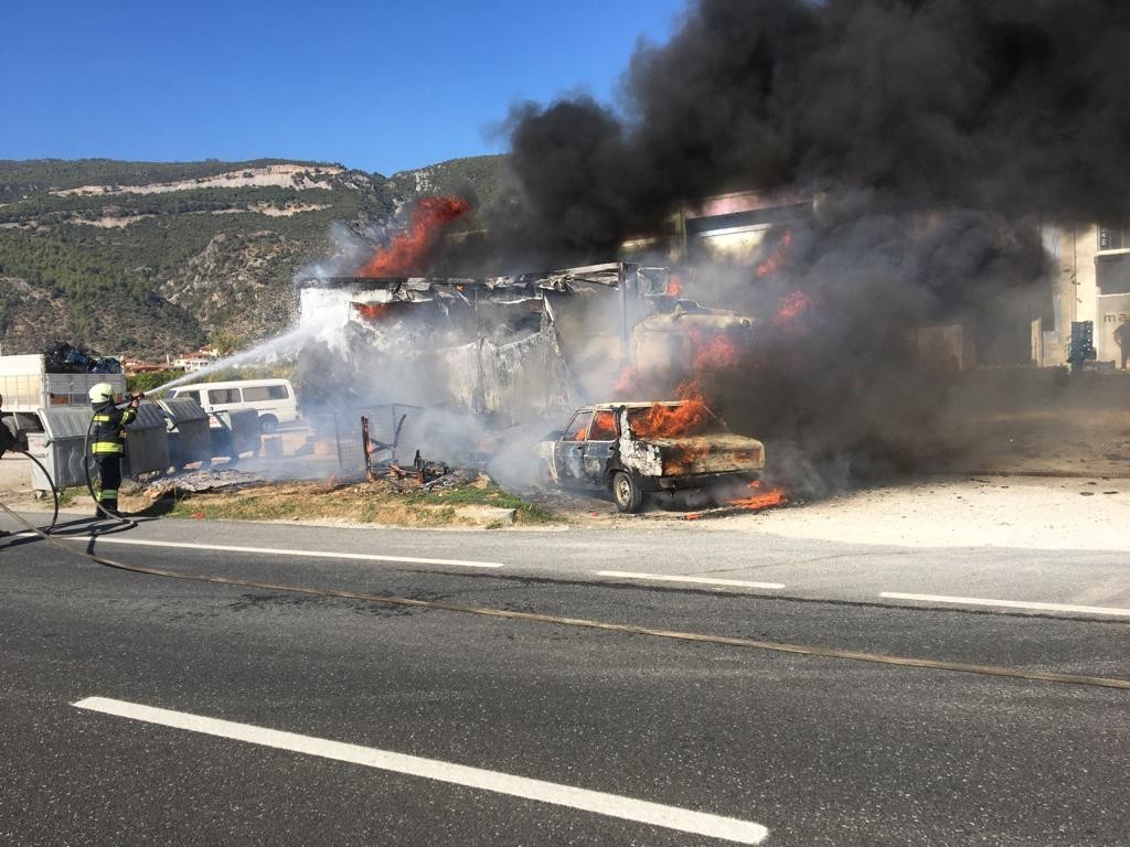 Muğla’daki yangında tır ve otomobil hurda yığınına döndü