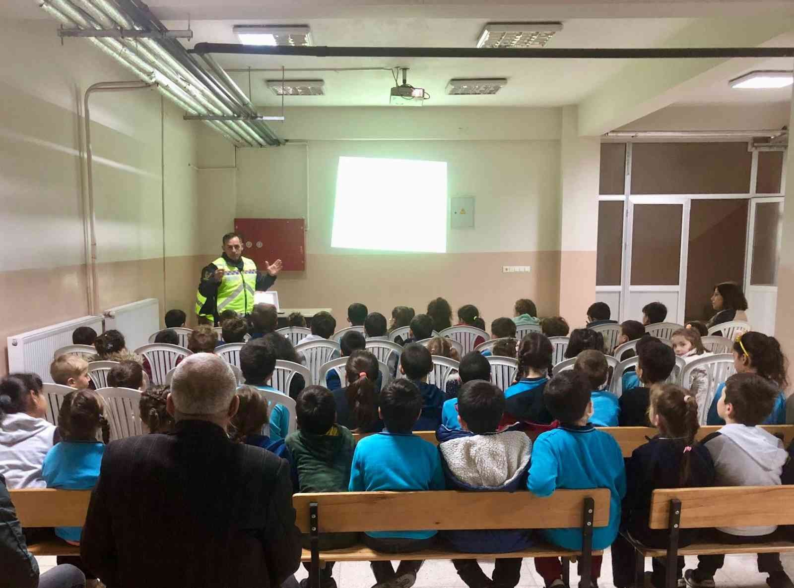 MUĞLA (İHA) – Muğla İl Jandarma Komutanlığı Menteşe Jandarma Trafik timleri tarafından ilköğretim okullarda trafik kuralları hakkında eğitimler veriliyor.