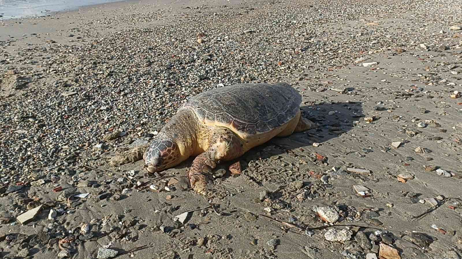 Muğla’nın Bodrum ilçesinde nesli tükenmekte olan caretta caretta cinsi kaplumbağa, fırtınanın etkisiyle ölü halde sahile vurdu.