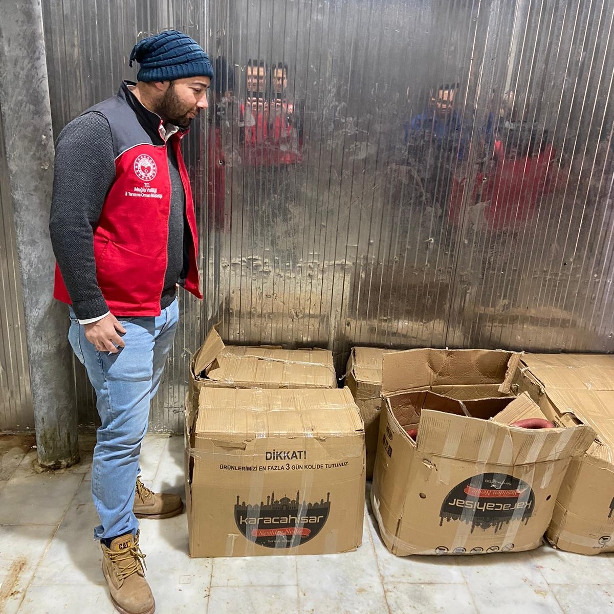 Muğla İl Tarım ve Orman Müdürlüğünden yapılan yazılı açıklamada,”02.01.2023 tarihinde gelen ihbar üzerine saat 07.30-08.00 de Muğla Menteşe otogarında yapılan incelemede menşei belli olmayan etiketsiz ve taşıma koşulları uygun olmayan 305 kg sucuk ele geçirildi. Muğla İl Tarım ve Orman İl Müdürlüğümüz kontrol görevlileri tarafından 305 kg sucuğa imha edilmek üzere el konulmuştur.5996 sayılı kanunda belirlenen sorumlulara idari para cezası uygulanmış olup yasal süreç devam başlatılmıştır. İhbarlarınızı Alo 174 ihbar hattına veya “0501 174 0 174” numaralı hattımıza yapabilirsiniz” ifadesi kullanıldı.