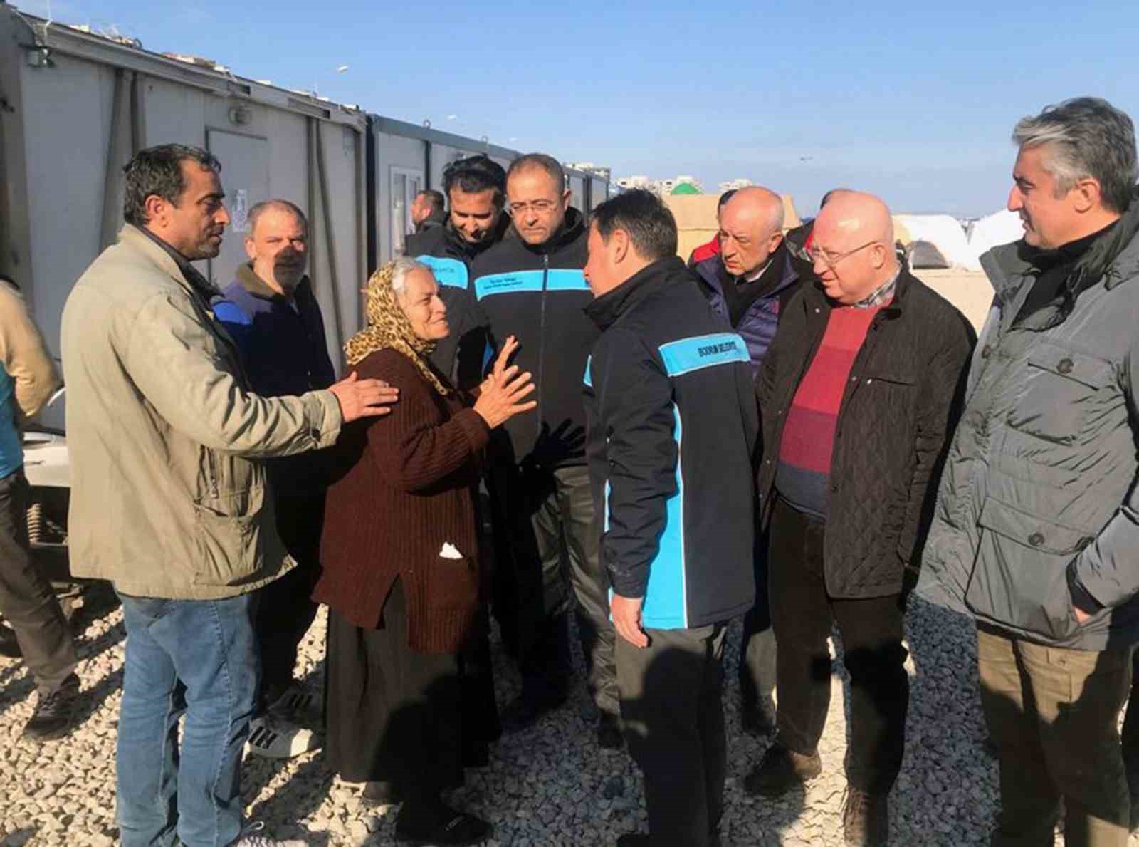 Arsuz ilçesindeki depremzedelerle görüşen ve yapılan yardımlar hakkında bilgiler alan Başkan Gümüş daha sonra beraberindeki heyet ile birlikte depremin en çok etkilediği Hatay’a geçti. Hatay’ın Defne ilçesini ziyaret eden Başkan Gümüş, bölgede Antalya Milletvekili Cavit Arı, Defne Belediye Başkanı İbrahim Güzel, depremzedeler ve enkaz kaldırma çalışmalarını sürdüren Menteşe Belediyesi ekipleri bir araya geldi.