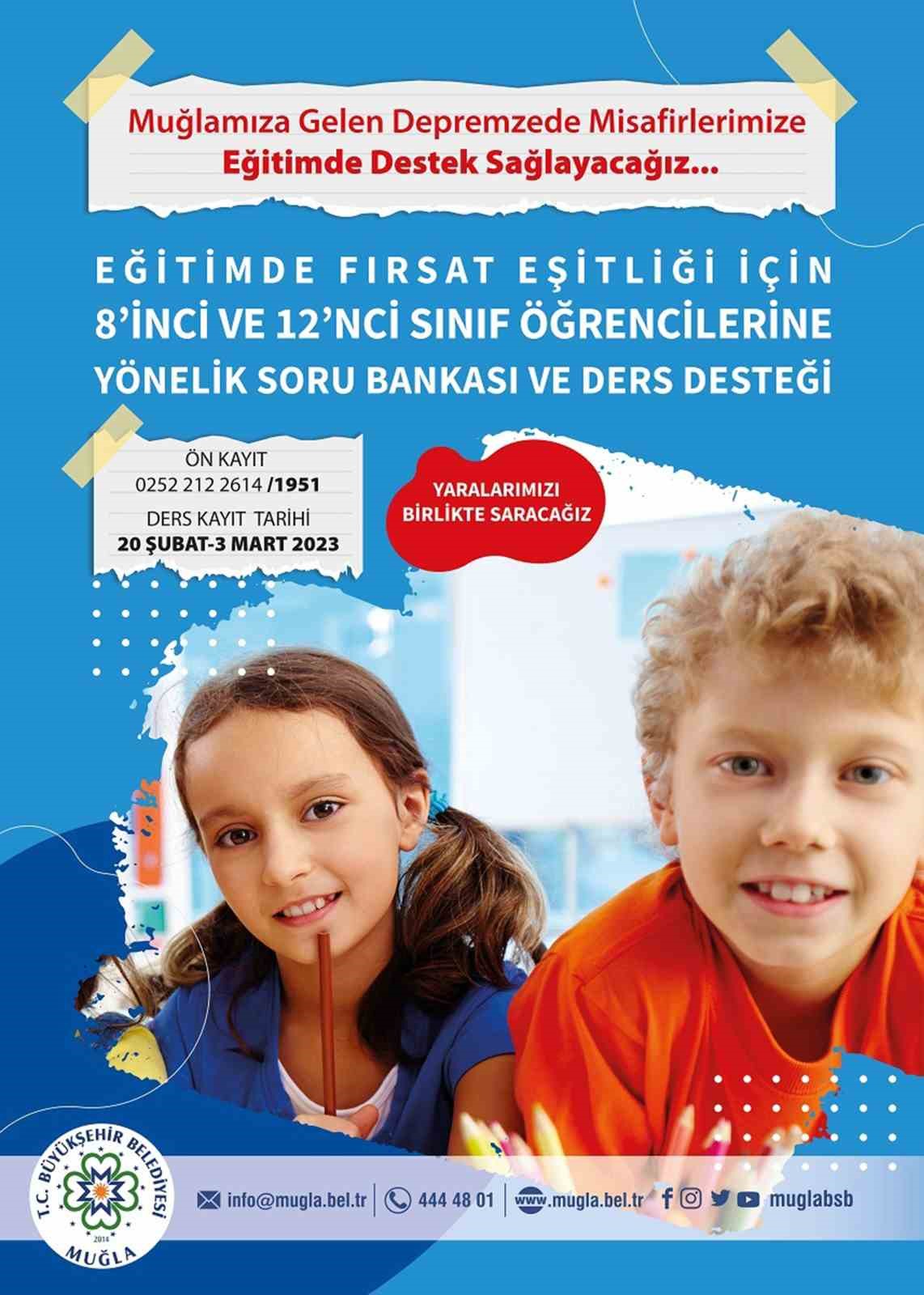 MUĞLA BÜYÜKŞEHİR BELEDİYESİ DEPREM BÖLGESİNDEN MUĞLA’YA GELEN GENÇLERİN EĞİTİMİNE KATKI SUNMAK VE SINAVA HAZIRLANMALARINI SAĞLAMAK AMACIYLA EĞİTİM DESTEĞİNİ HAYATA GEÇİRİYOR.