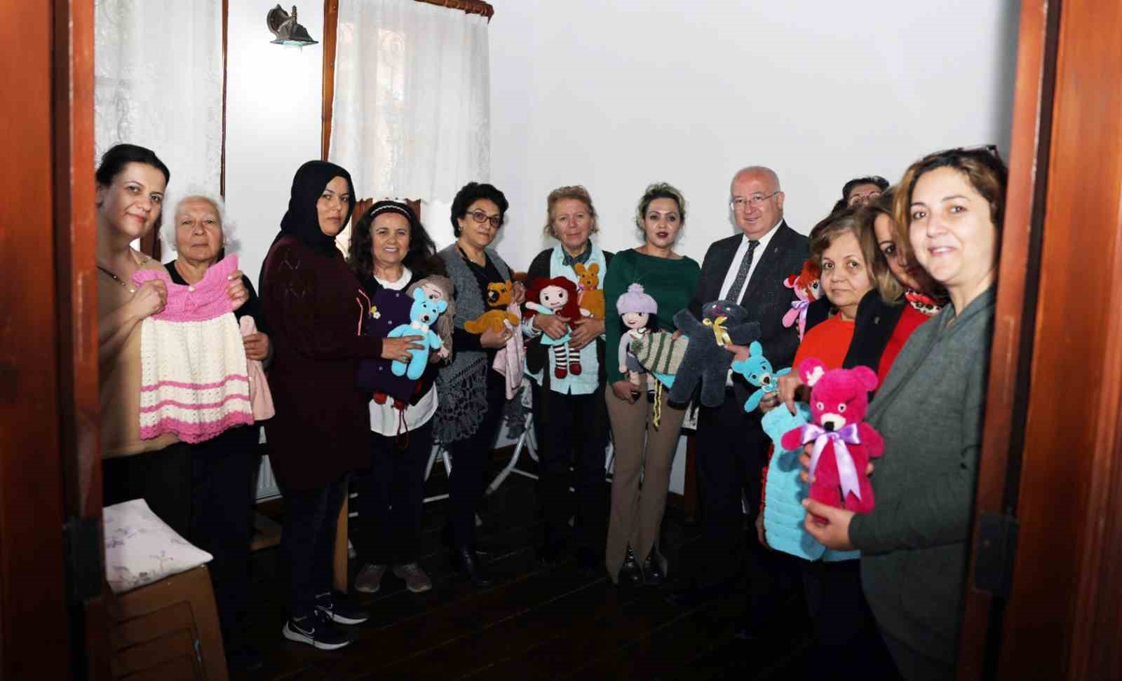 Menteşe Belediyesi’nin örgü kursuna katılan kadınlar tarafından depremzede çocuklar için örülen oyuncak bebek, lif ve kıyafetler Menteşe Belediyesi El Ele Butik Dayanışma Merkezi üzerinden depremzedelere ulaştırılıyor.