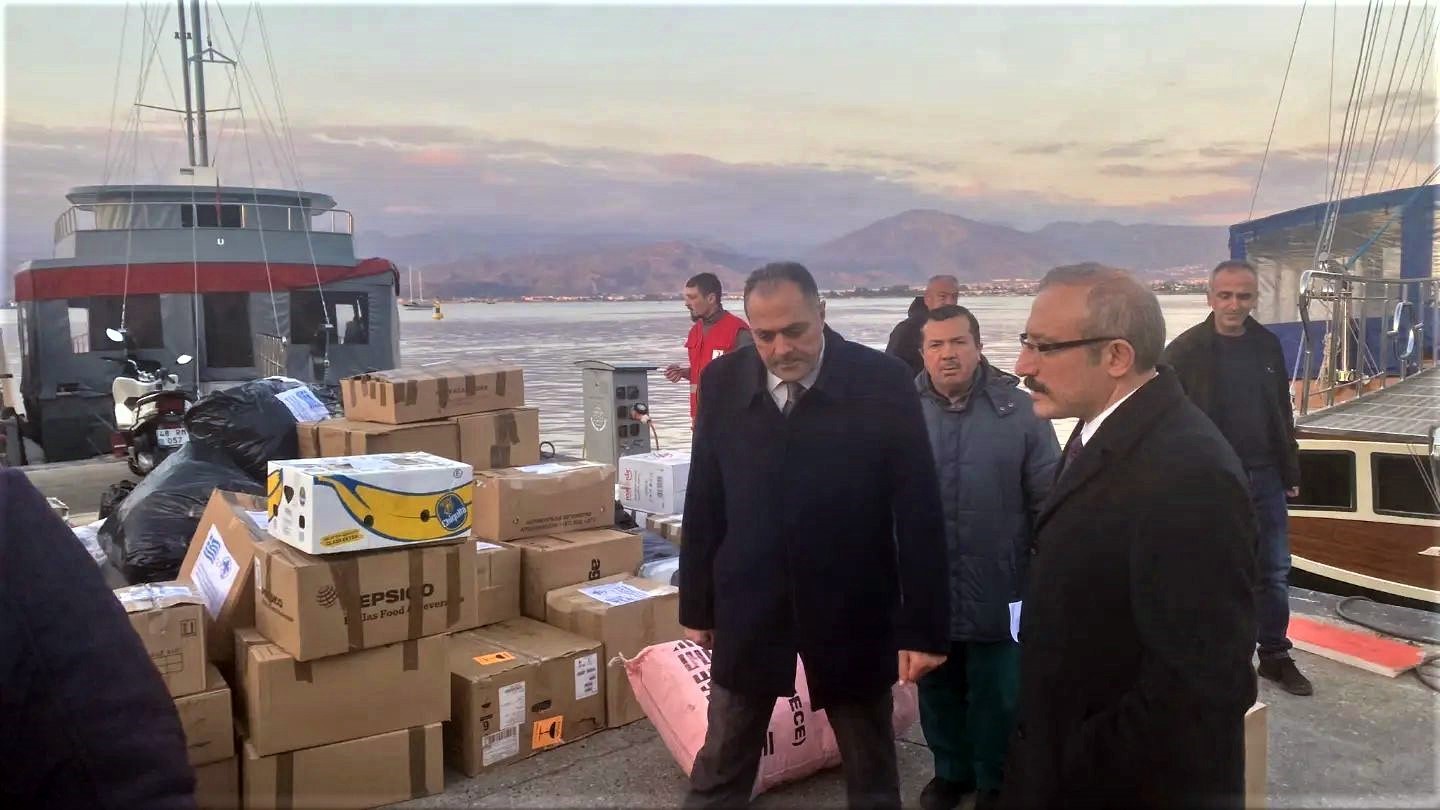 RODOS ADASINDAN GÖNDERİLEN YARDIMLARI KAYMAKAM KARAMAN KARŞILADI