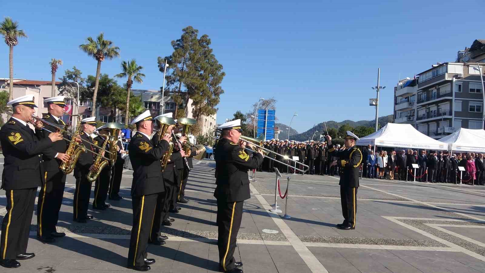 Saat 09.30 da Atatürk büstü önünde gerçekleşen anma töreninde çelenk sunumunun ardından Aksaz Deniz Üs Komutanlığı Bandosu eşliğinde saygı duruşu ve İstiklal marşı okundu. Aksaz Deniz Üs ve Garnizon Komutanlığı Deniz Binbaşı Berdan Aktürk tarafından günün anlam ve önemini belirten konuşmasının ardından, program Armutalan Kültür Merkezi’nde devam edecek.