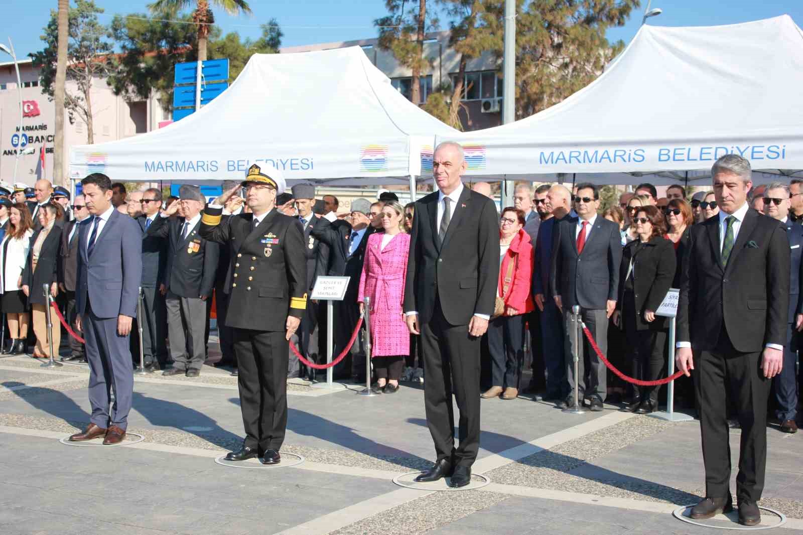 18 Mart Şehitler Günü programı Marmaris’te çelenk sunma töreni ile başladı