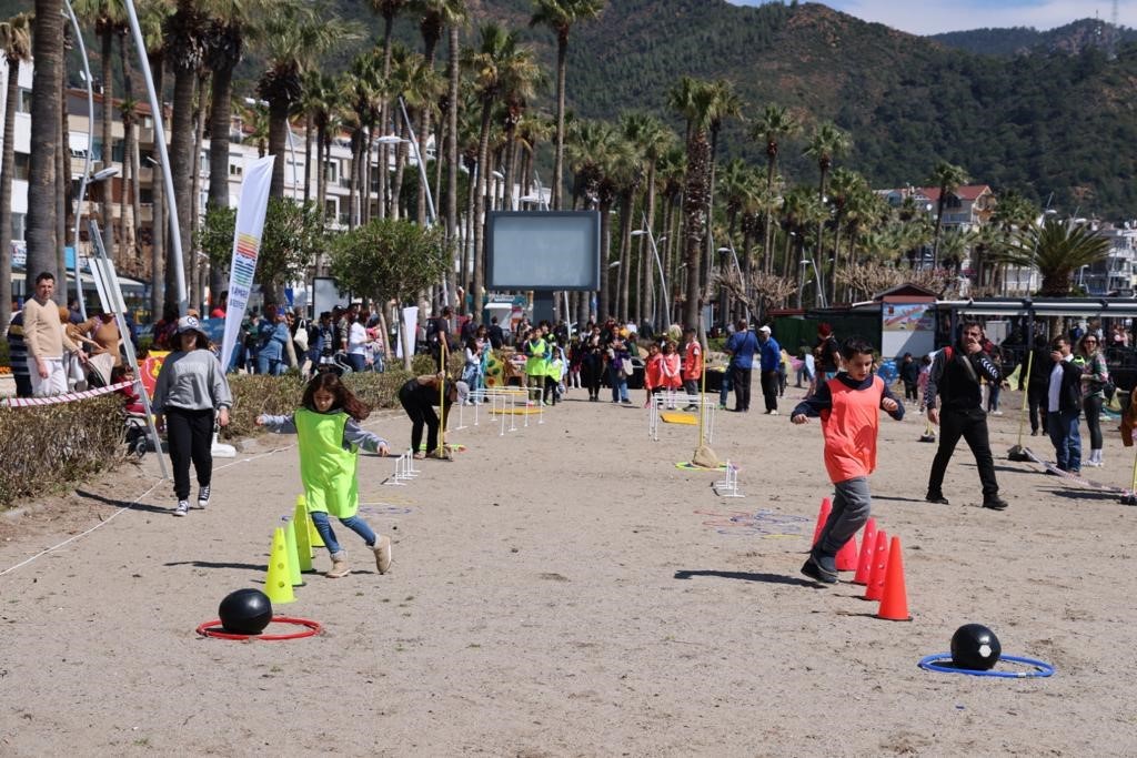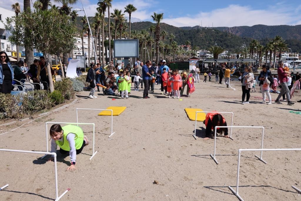 Marmaris’e deprem bölgesinden gelen çocukların da aileleriyle birlikte katıldığı etkinlikte, halk plajında kurulan parkurlarda birbirinden eğlenceli oyunlar oynayan çocuklar doyasıya eğlenerek mutlu bir gün geçirdi.