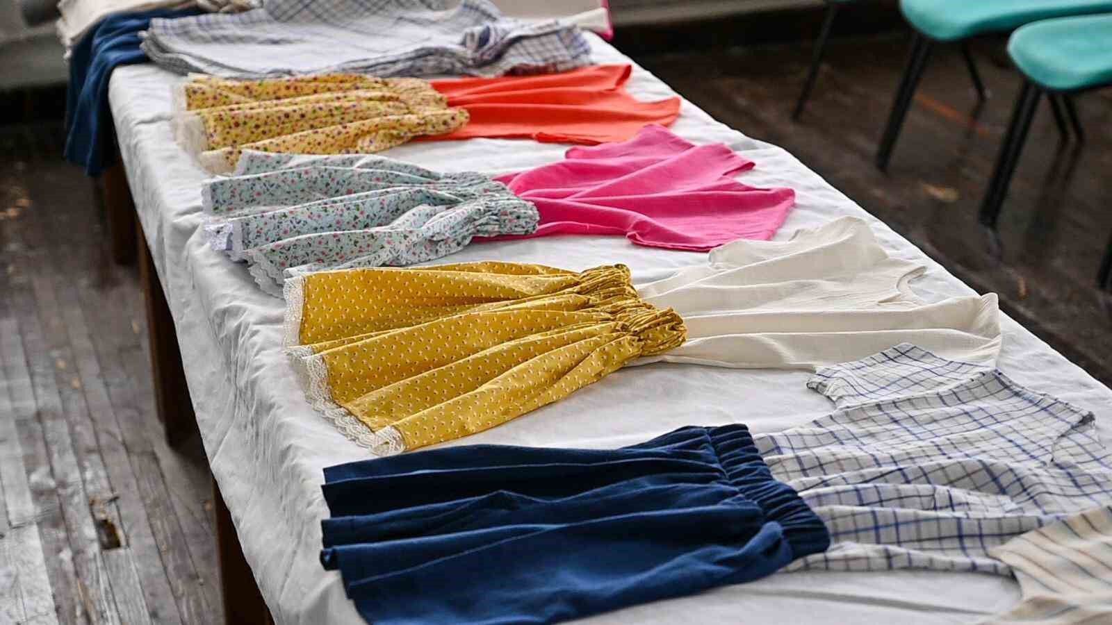 Kız çocukları için bluz ve etek; erkek çocukları için ise gömlek ve şorttan oluşan bayramlık kıyafetler, atölyelerde 30 usta öğreticinin maharetli ellerinde hazırlandı. Bluz, etek, şort ve gömlek olmak üzere her birinden 100’er adet dikilen bayramlık kıyafetlerin yanında 100 adet örme oyuncak da deprem bölgesine gönderilmek üzere özenle paketlendi.