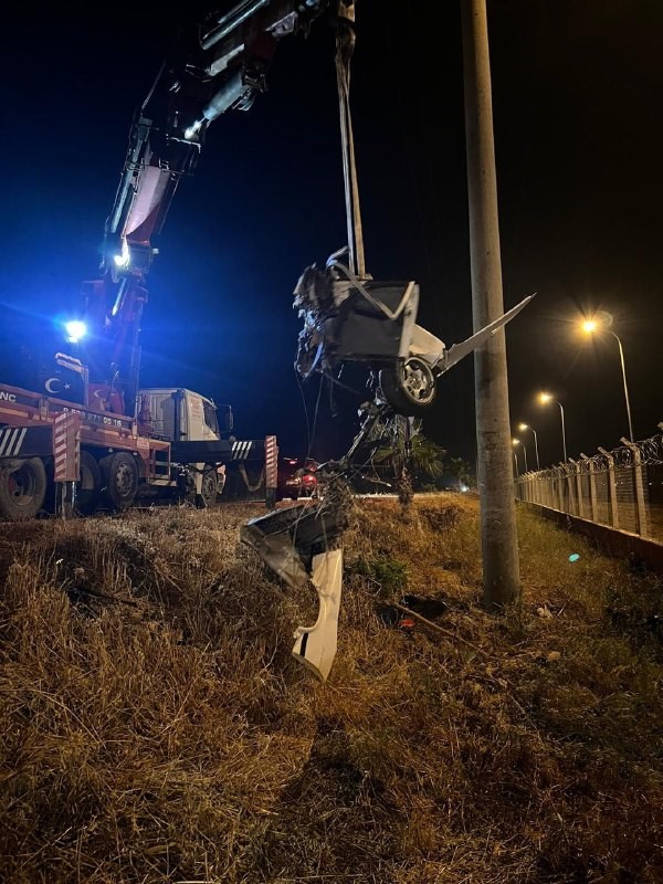 Aydınlatma direğine çarpan araç metal yığınına döndü: 1 ölü, 1 yaralı