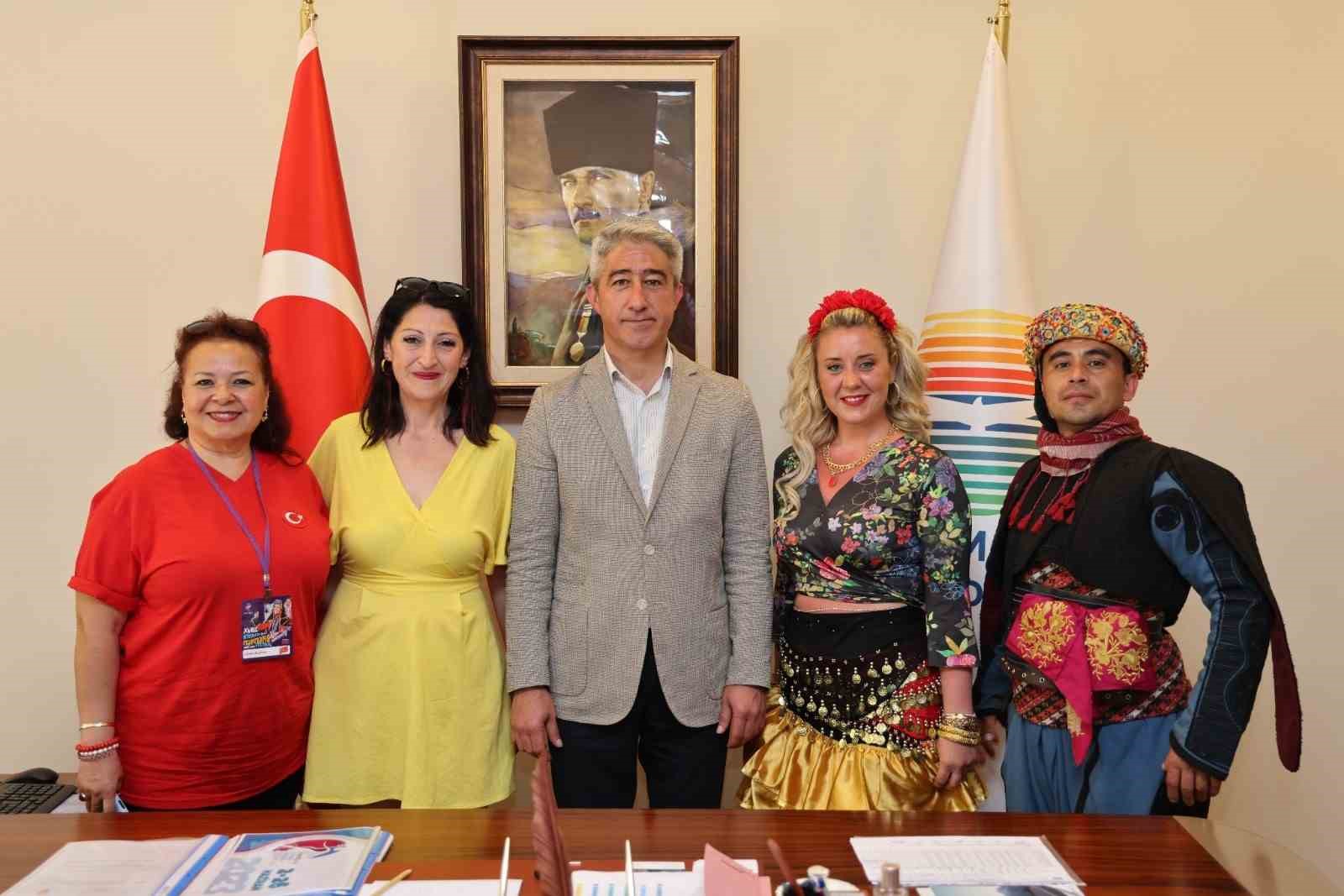 19 MAYIS ATATÜRK’Ü ANMA, GENÇLİK VE SPOR BAYRAMI KUTLAMALARI ÇERÇEVESİNDE DÜZENLENEN 18. ULUSLARARASI MARMARİS HALK DANSLARI FESTİVALİ İÇİN MARMARİS’E GELEN GALART EKİBİ VE DANSÇI KONUKLAR BELEDİYE BAŞKANI MEHMET OKTAY’I ZİYARET ETTİ.
