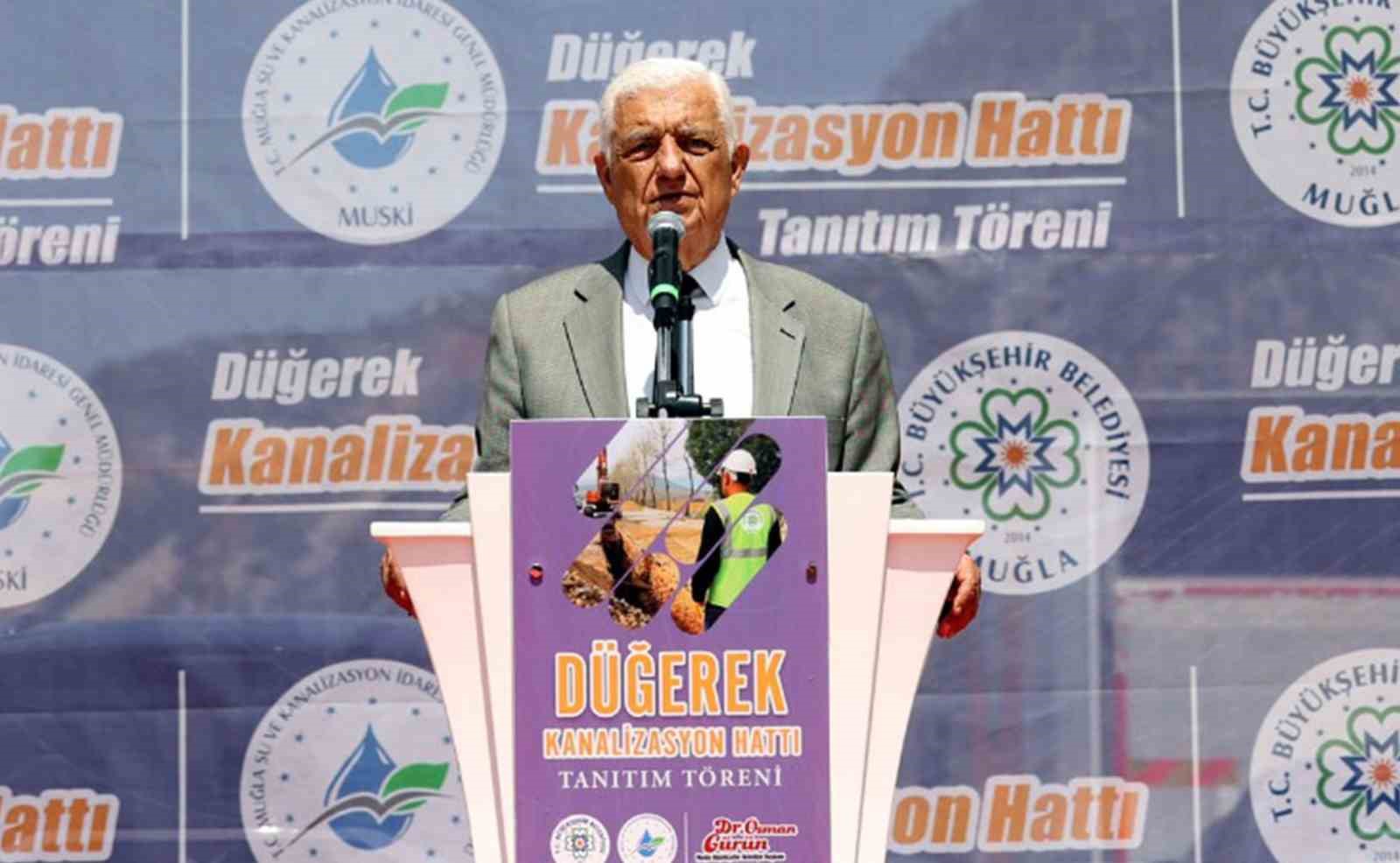 Düğerek Mahallesi kanalizasyon hattı tanıtım töreninde konuşan Menteşe Belediye Başkanı Bahattin Gümüş, altyapı yatırımlarında önemli hizmetlerden birinin de suyun geri dönüşümün sağlanması olduğunu belirtti ve Muğla’ya değer katan hizmetleri için Başkan Gürün’e teşekkür etti. Başkan Gümüş; “Düğerek Mahallemiz yapılan yatırımlarla çok büyük değer kazandı. Burada Başkanımız dedesinin evini bize bağışladı. 25-30 Milyon TL’nin üzerinde bir değere sahip yeri bizlere bağışladı. Biz de restorasyonunu yaptık ve burayı Düğerek halkının hizmetine sunacağız. Hizmetlerinden dolayı Büyükşehir belediye başkanımıza teşekkür ediyorum”