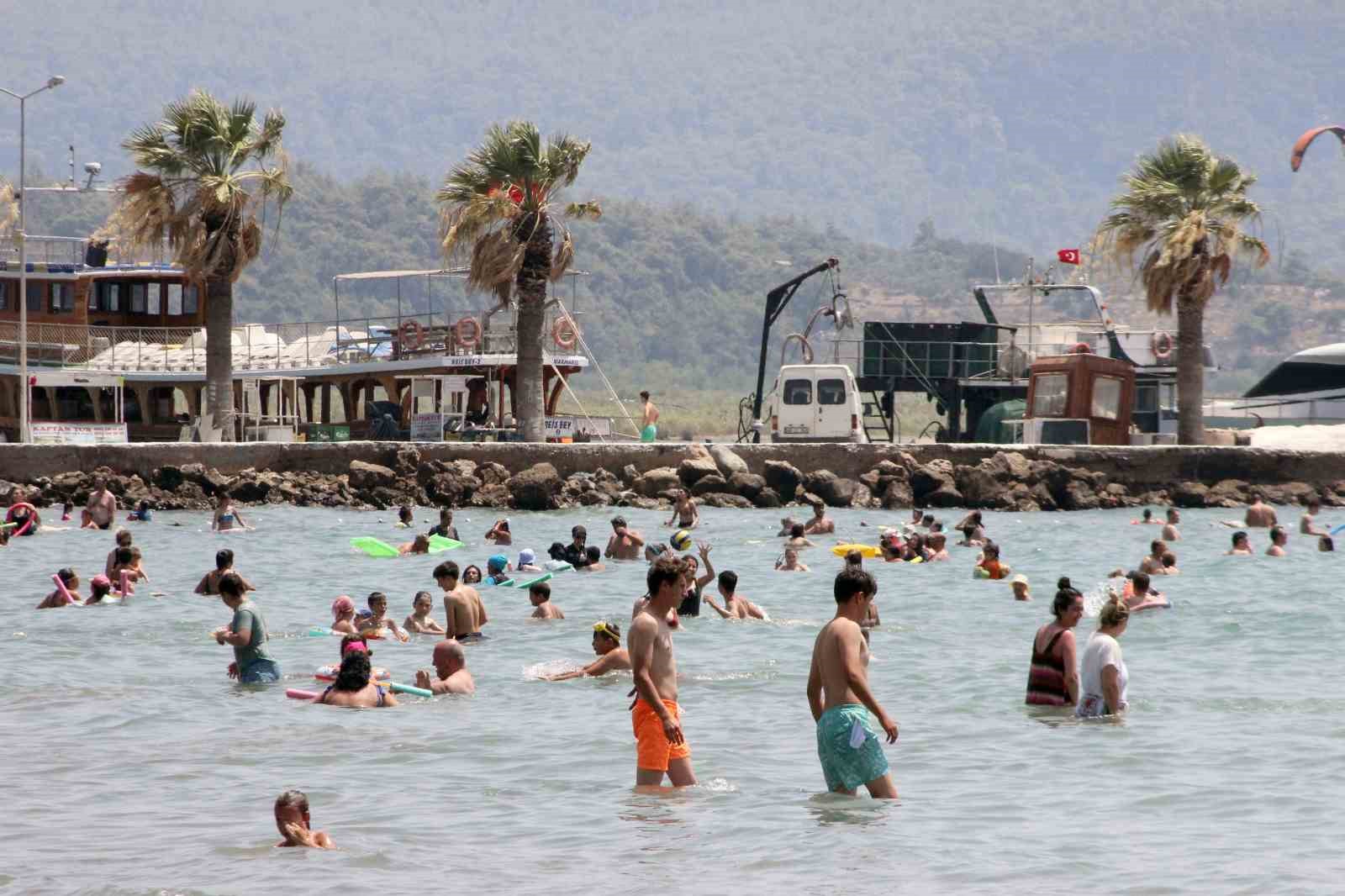 Sıcak hava nedeniyle öğle saatlerinde turistik bölgelerde vatandaşlar ya denizi ya da kapalı mekanları tercih ederken, ’Sakin Kent’ ünvanlı Ula’nın Akyaka Mahallesi’nde vatandaşlar denizde kalmayı tercih etti.