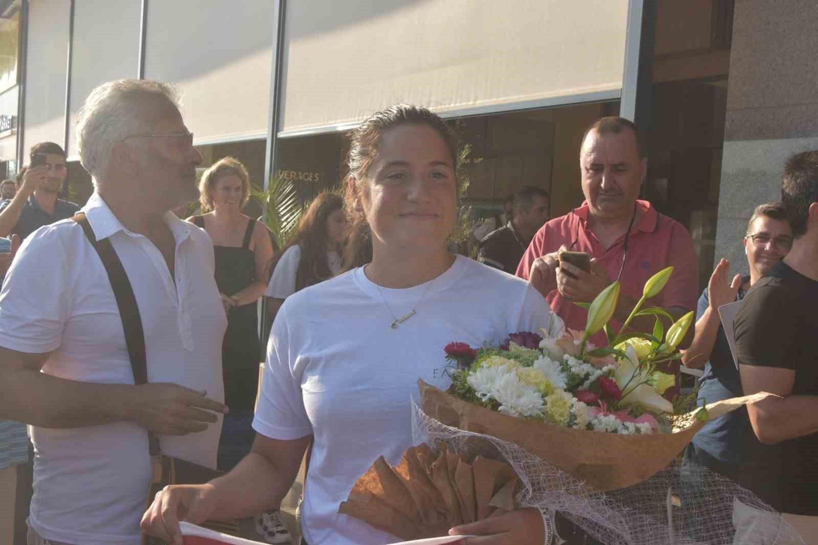 Memleketi Bodrum’a dönen Aysu Türkoğlu için coşkulu bir karşılama yapıldı. Bodrum Belediye Başkanı Ahmet Aras, Türkoğlu’nun ailesi, Bodrumspor Derneği Yüzme Şubesi ve genç yüzücünün onlarca seveninin katıldığı bandolu karşılamada renkli anlar yaşandı. Kendisine takdim edilen çiçeği alan Aysu Türkoğlu, duygusal anlar yaşadı. Karşılamaya katılanlar Aysu ile bol bol fotoğraf çektirdi.