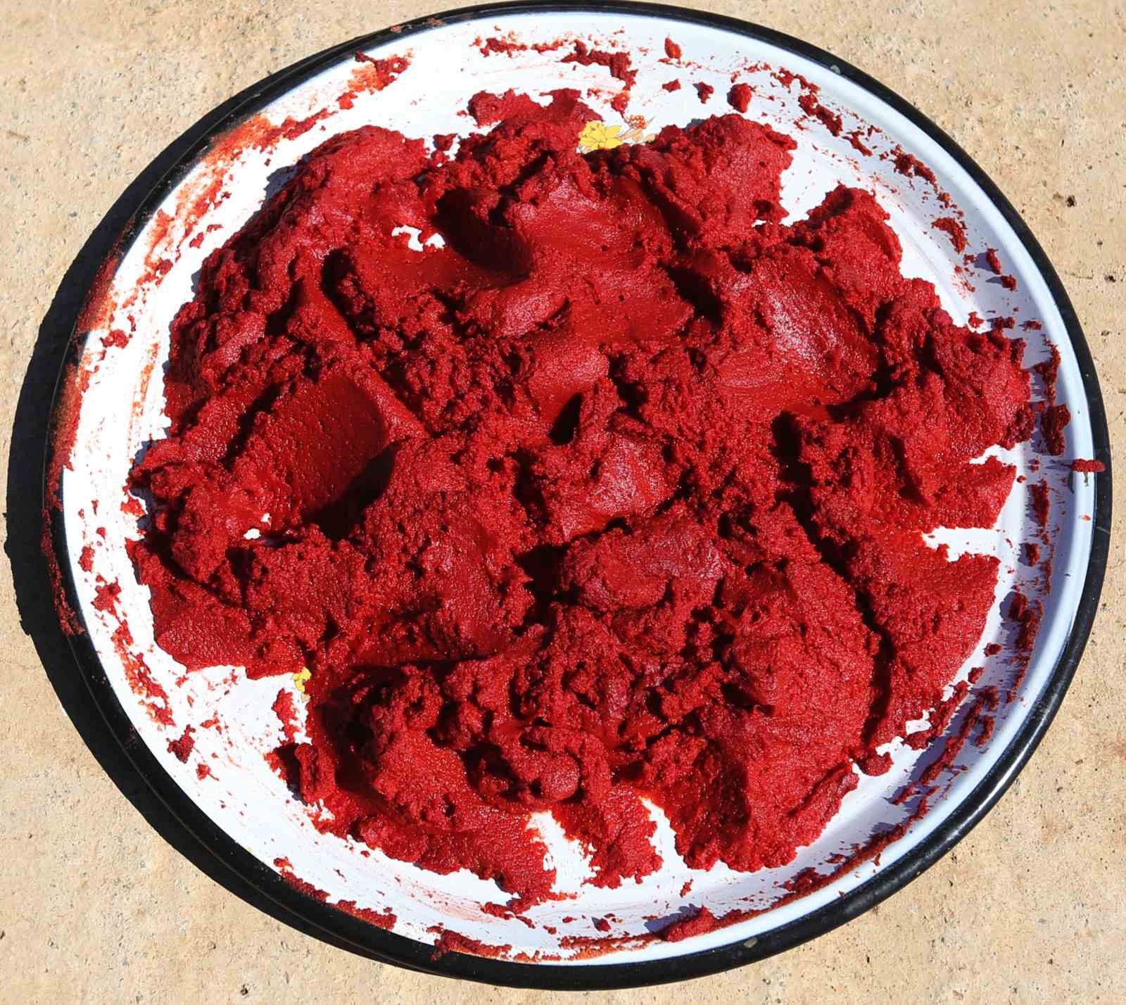 Domatesin ekiminden sonra bakımı kadar hava şartlarının da önemli olduğunu belirten Elvan Yağlı, “Domatesler yetişti ve salçalarımızı yapıyoruz. Bunun yanında kışlık kurutmalık tarhana, börülce, fasulye, patlıcan, bamya ve biber yetiştiriyoruz. Domatesleri topladıktan sonra yıkıyoruz, doğruyoruz, güneşte bekletiyoruz ve değirmene gönderiyoruz. Değirmenden geldikten sonra tuzluyoruz. Leğenlere ve sinilere döktükten sonra güneşte pişirip kavanozlara koyuyoruz. Bu sene salçalık domates üretiminde 1 tona ulaştık. Yaklaşık 250 kilo da salça olacak. Salçayı domates ile biber karışımı yapıyoruz. Geçen seneye göre bu sene su kıtlığı vardı. Buna rağmen güzel. Geçen sene yaklaşık 500 kilo salça yapmıştık” dedi.