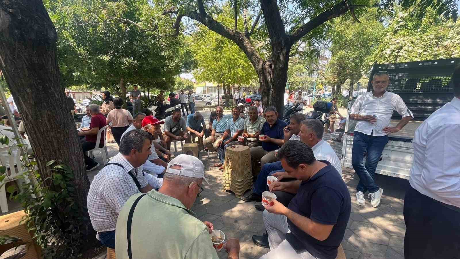 Aşure etkinliğinde dua okunurken, MHP İl Başkanı Oğuz Akarfırat ve Ortaca Belediye Başkanı Alim Uzundemir vatandaşlara aşure dağıtımı gerçekleştirdi.